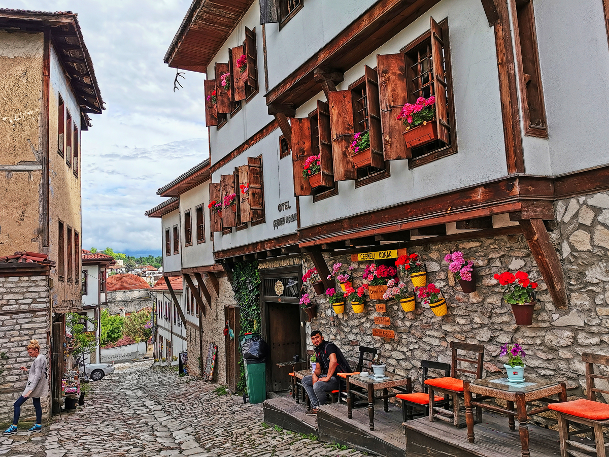 土耳其 老城特有的小方石头路面和依山而建的房子,住宿的民宿的位置很高,拖着行李箱走还是比较麻烦的。由于全城被列入古迹保护, 番红花城 没有任何现代化的酒店,所以旺季来都没有民宿可住宿啦。游览 番红花城 一天时间可能比较紧,我们入住由奥斯曼土木小楼改成的民宿,十分有中古的韵味。民宿的房间里布置着仿中世纪的物品,木窗上挂着手工刺绣的窗帘,窗台上都有花朵,彷佛已经融入当地的生活之中。