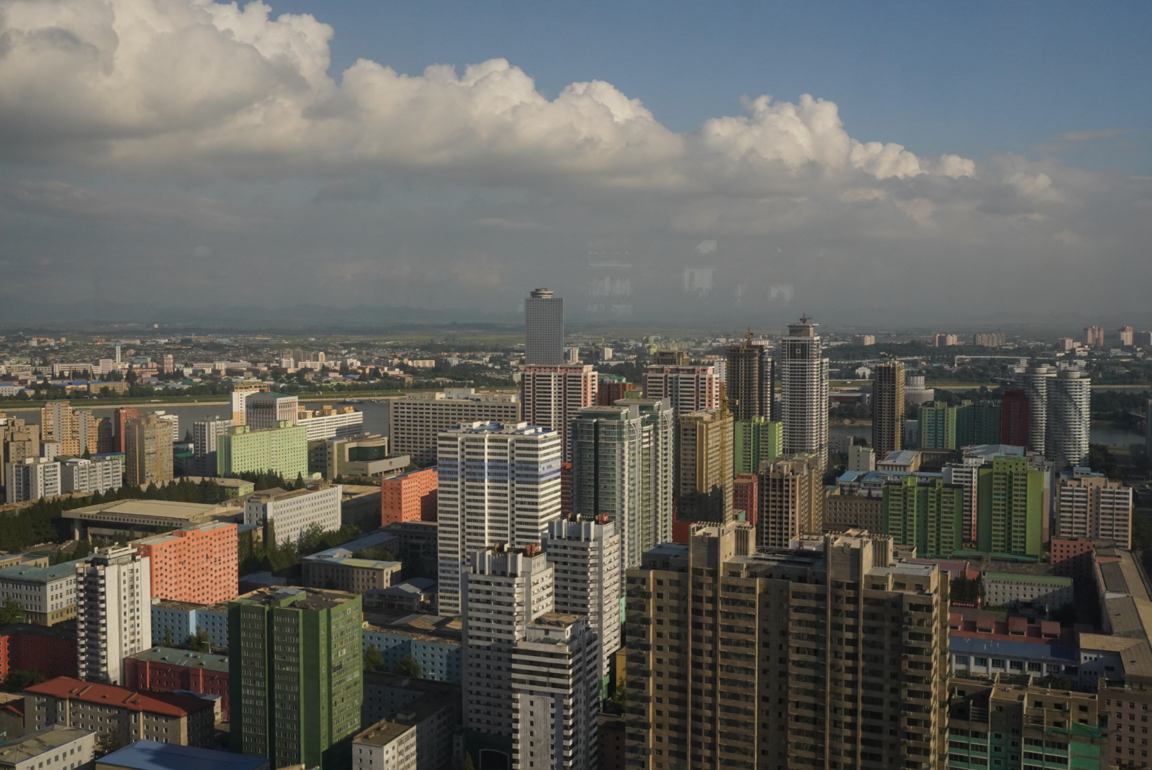 跳望平壤市区。可以看见市区非常安静,几乎没有车辆和行人。