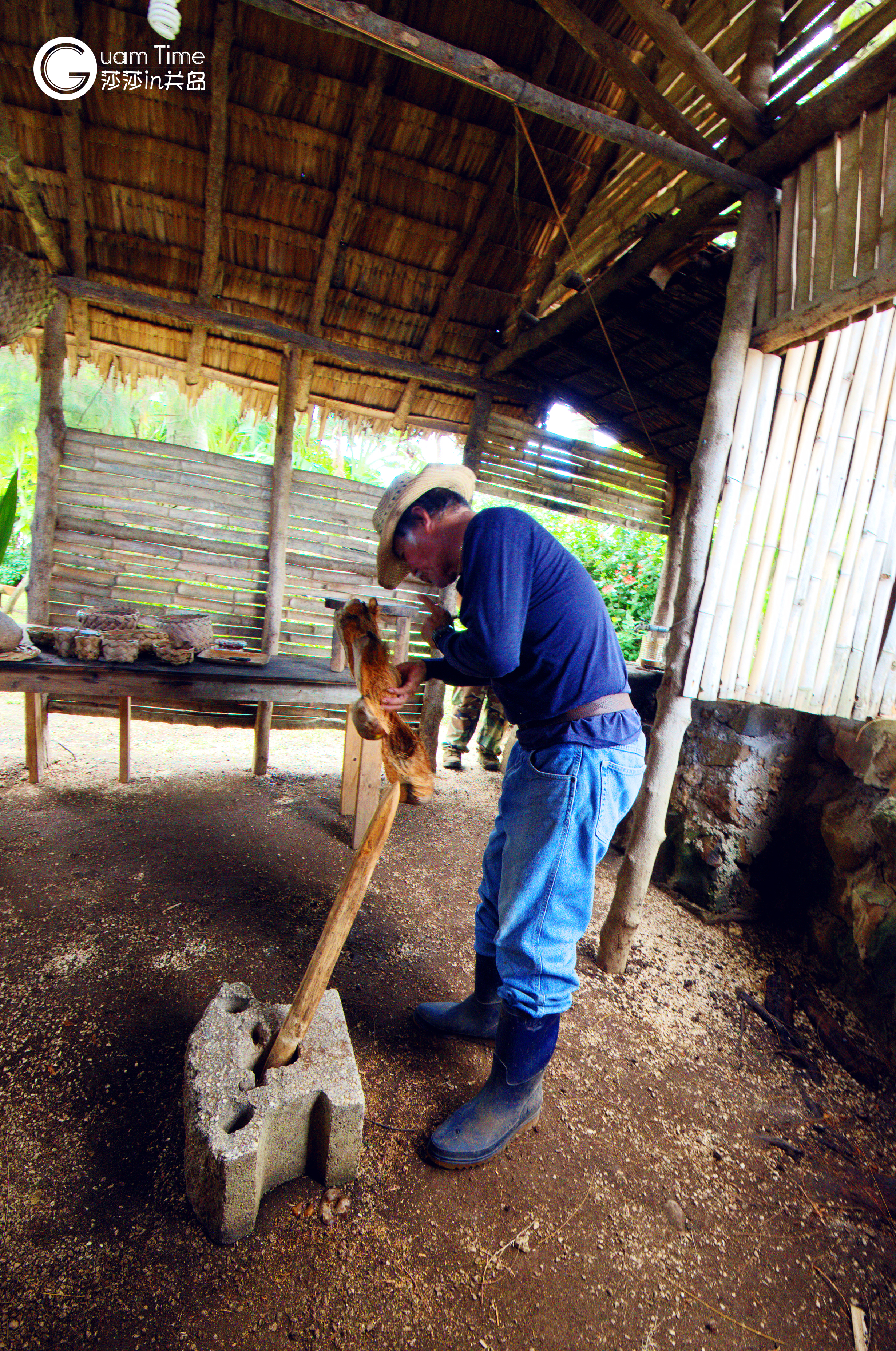 接着这个,是我认为最精彩,大叔给我们表演徒手波椰子,磨椰蓉,用手榨汁,味道真的不错。