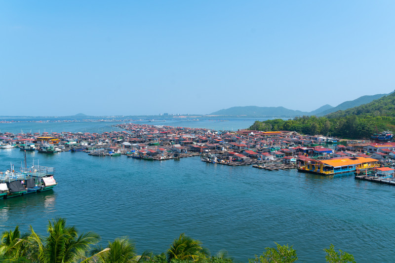 们第一次坐这样的渔船异常激动,一路欣赏海上田园-疍家渔排,渔船一深一浅很是飘逸, 感觉还是棒棒哒,么么哒。航行约五分钟后小伙伴终于上岸了,猴岛湾基地老板的车已在对 岸老码头等候多时了,刚一上岸老板很热情跟我们打招呼拎行李,小伙们情绪高涨一路高歌到营地