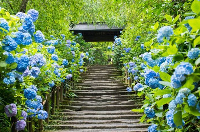 而我,或许是因为对于园艺花卉的爱好,一张明月院两旁盛开紫阳花的照片深深吸引了我,于是就这么愉快的决定了,办签证,定机票。