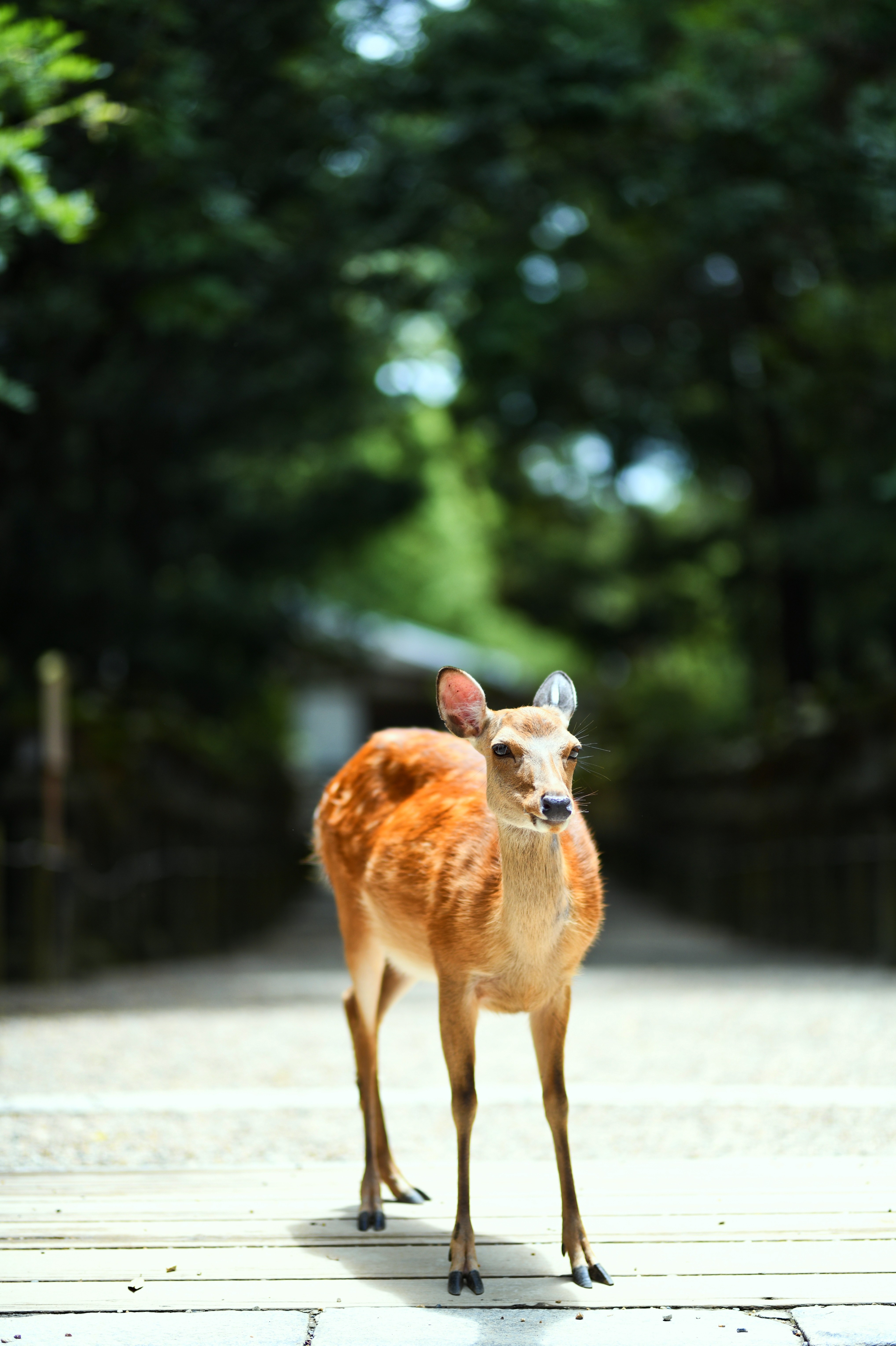 出没在春日大社的鹿,犹如精灵一般,也更符合“神的使者”这么一说。在这里,那些漫步在古树与建筑物之间的小鹿,比集中在公园一带的小鹿更为神秘,恍如使者化身为鹿来去人间,令春日大社更显幽静。