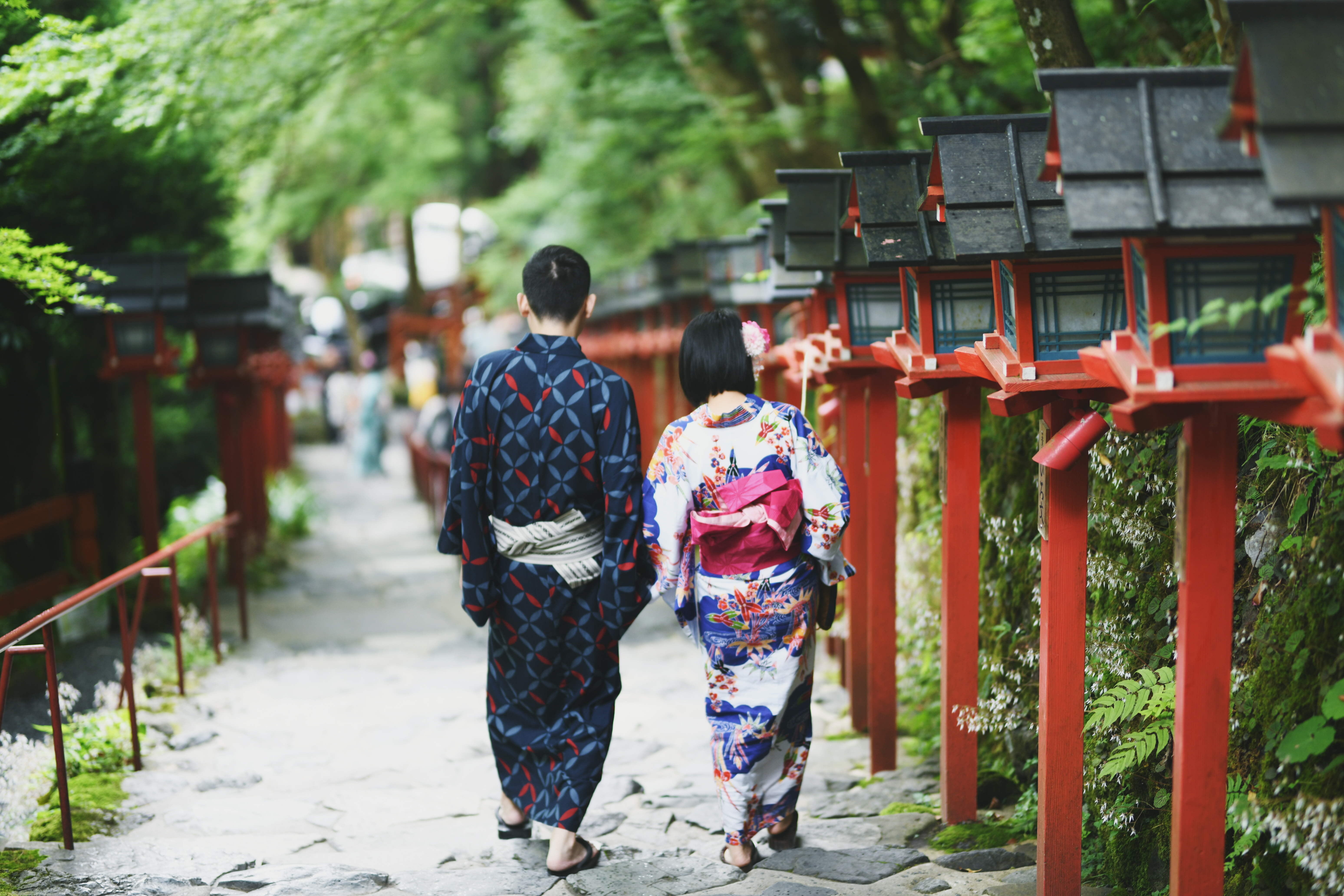贵船神社是位于京城北面自鞍马山西麓的古老神社,原为供奉山林水泽守护神的神社。除此之外,还曾有史书记载平安时代的著名诗人和泉式部曾在此祈愿夫君能够回心转意,因而贵船神社中供奉结缘之神的中宫因此而远近闻名,每年都有很多人慕名前来游玩参拜。神社中的灵泉水签浮在水中便可显示抽签者的命运,深受年轻女性欢迎。若是赶巧碰上了夏季,你便会看到建在溪水上接连不断的川床。