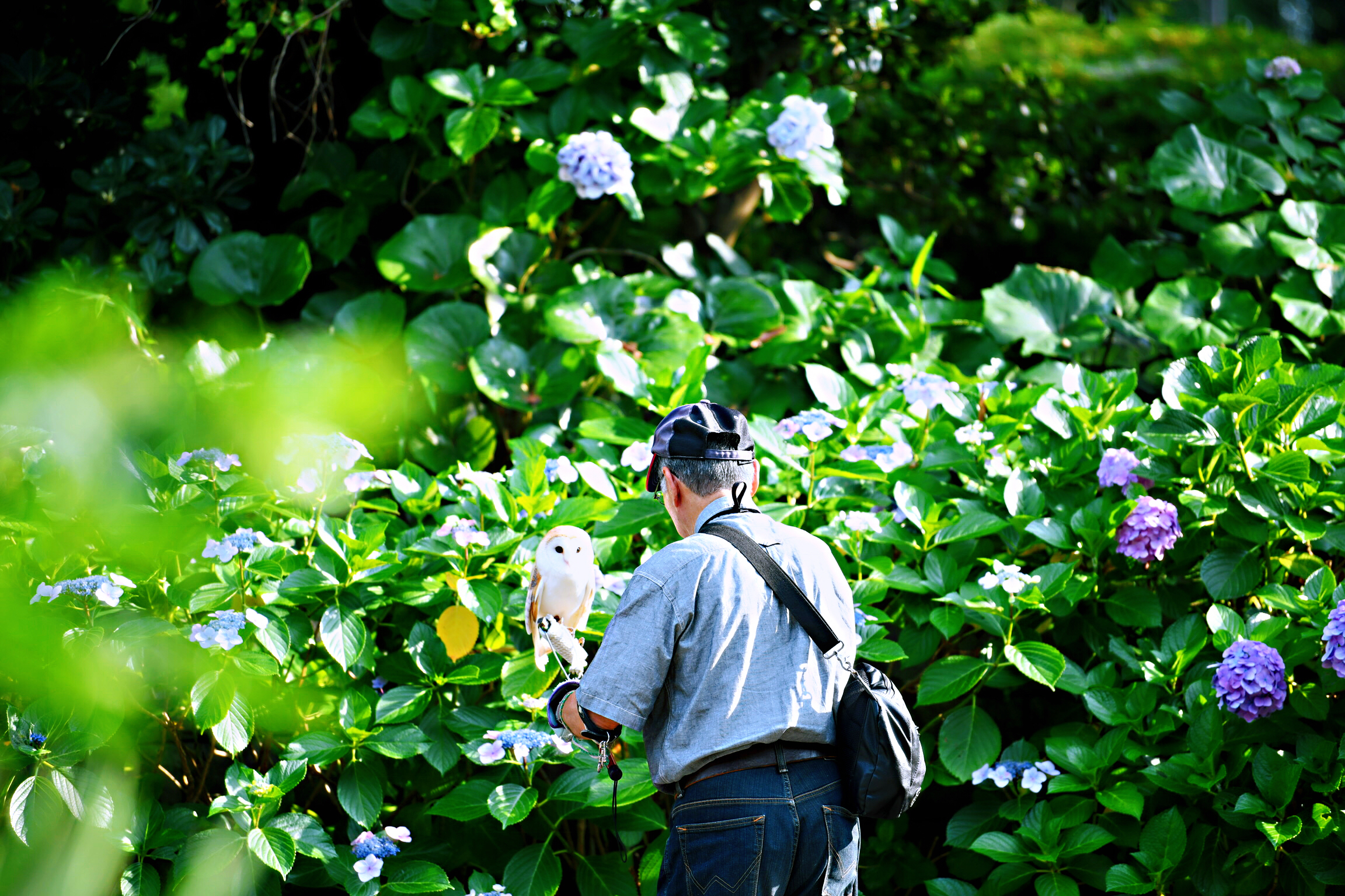 雪白的猫头鹰,学名“雪鹘”,这位日本老爷爷带着它在江之岛上散步,有人要和他合影,他也是欣然接受。
