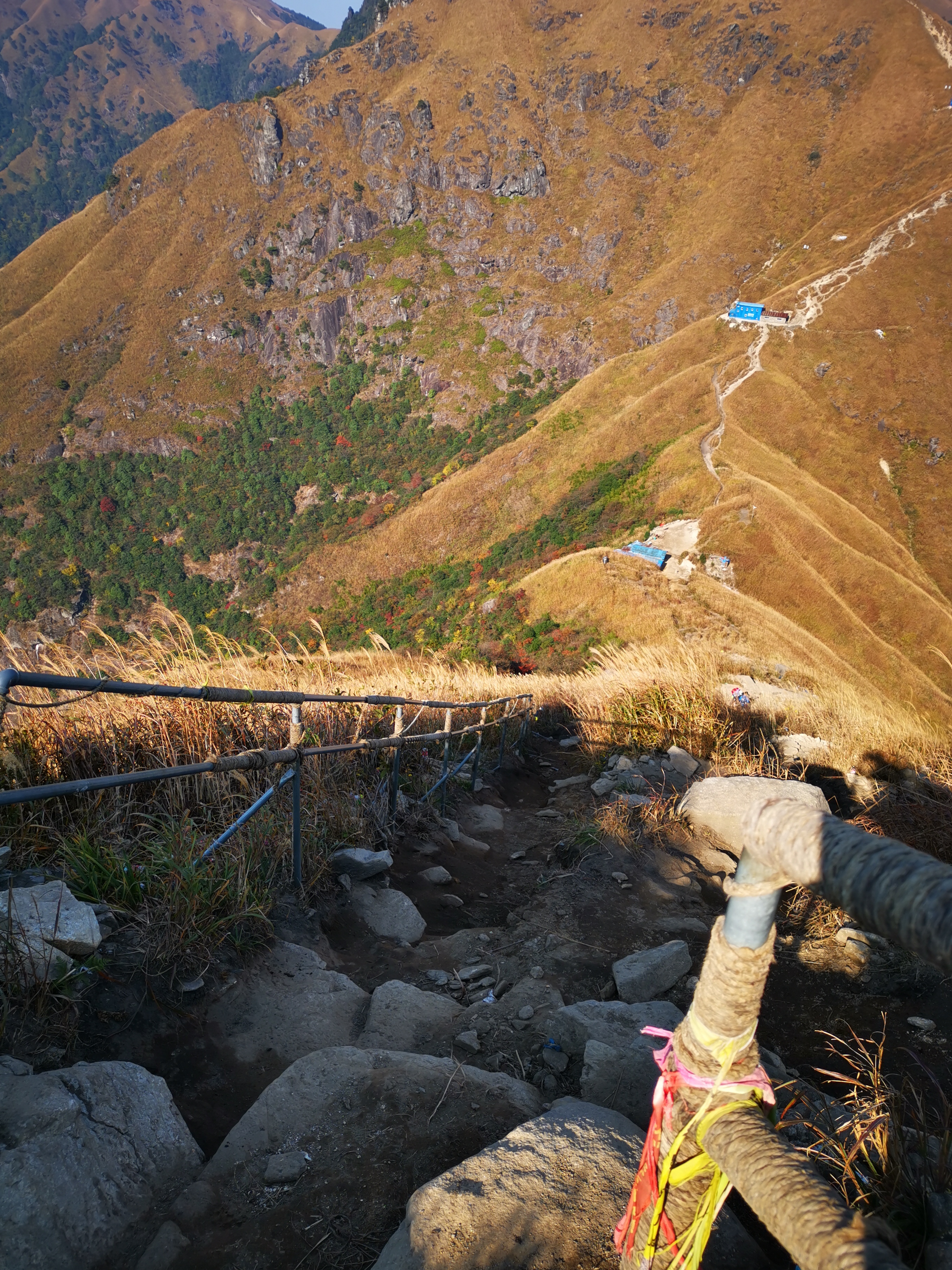 绝望坡的起点到终点,海拔1360-1710米,这段路程走的是山脊,不断爬坡,陡峭路段还有栏杆和绳索,便于保护和攀爬。回看来时路,就是一道风景。