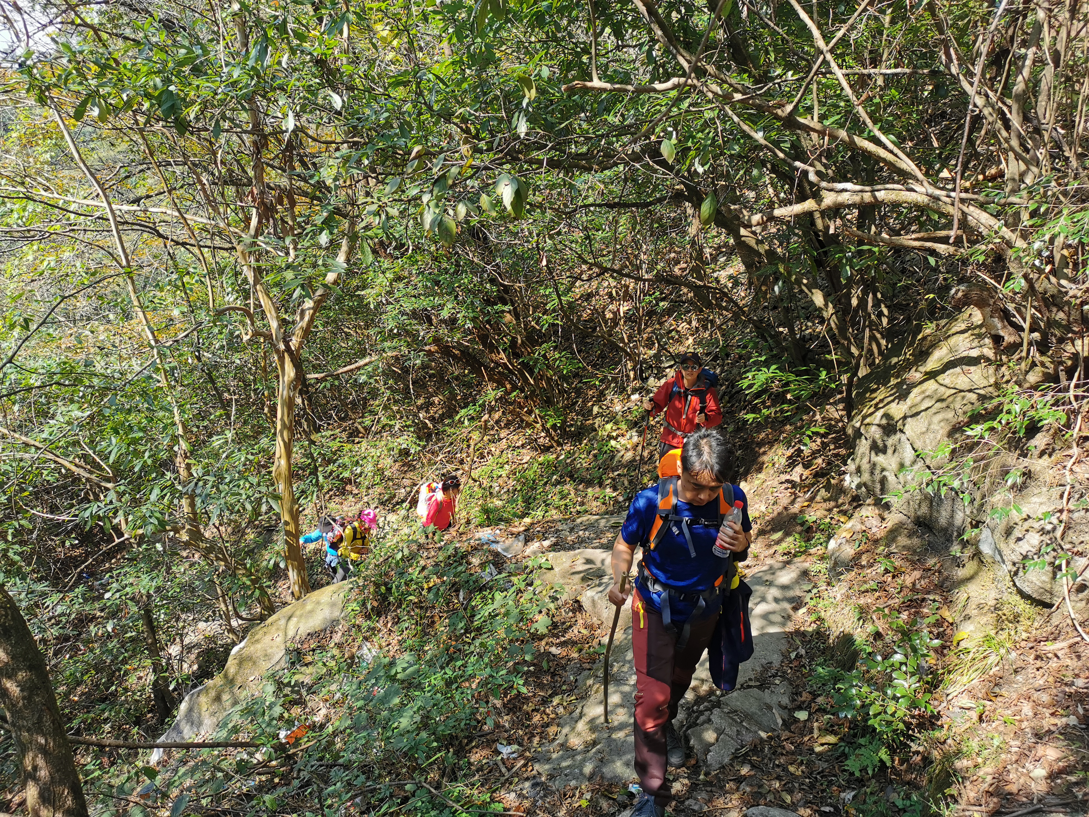 后面的碎石路有一定的难度,很多时候需要手脚并用,扒着树根或大石借力才能登上,好不容易爬上绝望坡起点,再来几张打卡照,对“绝望”二字就有了更深刻的体会!可谓不登高山,不知天之高也;不临深溪,不知地之厚也……