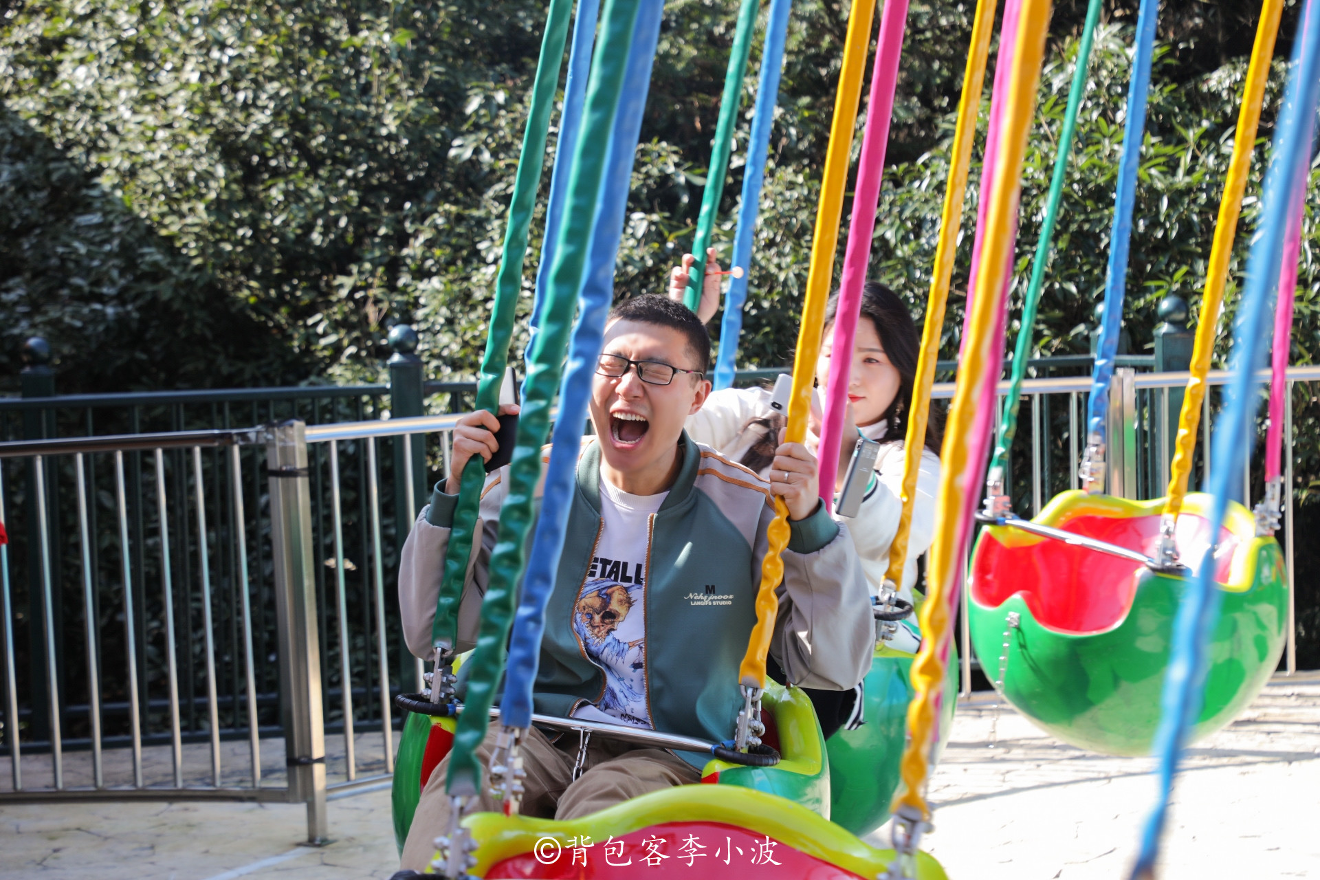 海盗船也是必打卡的网红项目,坐在中间跟坐在船头船尾想比,刺激感是绝对不一样的,随着摆动的幅度越来越大,瞬间荡下来的瞬间,加速感和失重感就会越明显,然鹅我为了录制视频,保持稳定,坐在了船中的位置,所以后面的两个小伙伴还笑我,说海盗船一定要坐在两边才好玩。