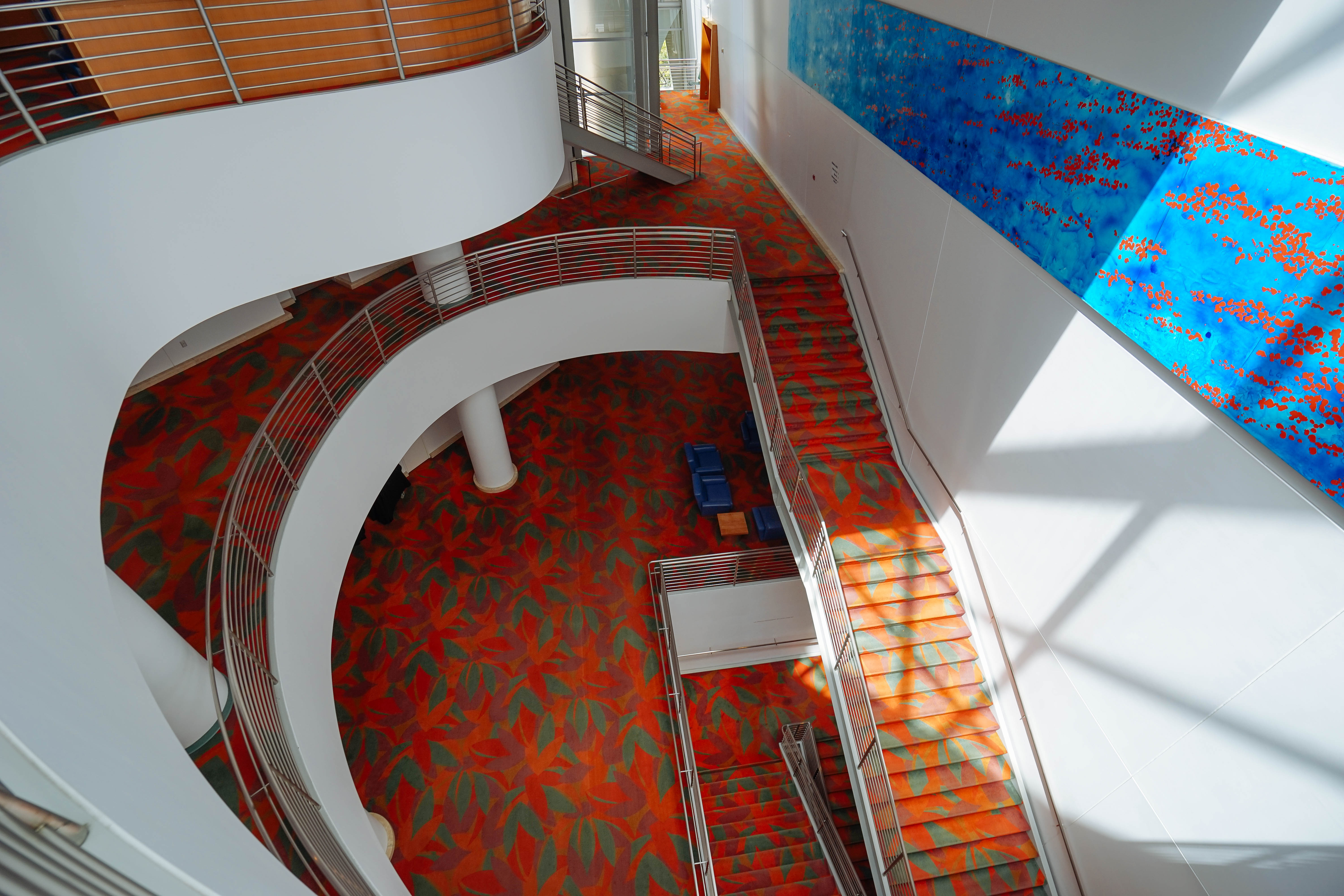 华特迪士尼音乐厅,十五分钟左右的路程就可以走到。不知道是不是周六日所以人那么少,还是本来市中心就是如此衰亡,大街上冷冷清清的没有什么人,只剩安静的街道还有两侧高大的建筑,也是有点可怕。不一会儿就看到迪士尼音乐厅那银光闪闪的外表,由很多曲面组成的建筑让你分不出都是几楼,你靠近以后会有工作人员指引你进去,这个免费景点不知道为什么那么好,挺多员工在里面值守的。建筑内部除了有空调之外,还有很多东西可以看的,很多地方都有小剧场,内部设计还是很有意思的。