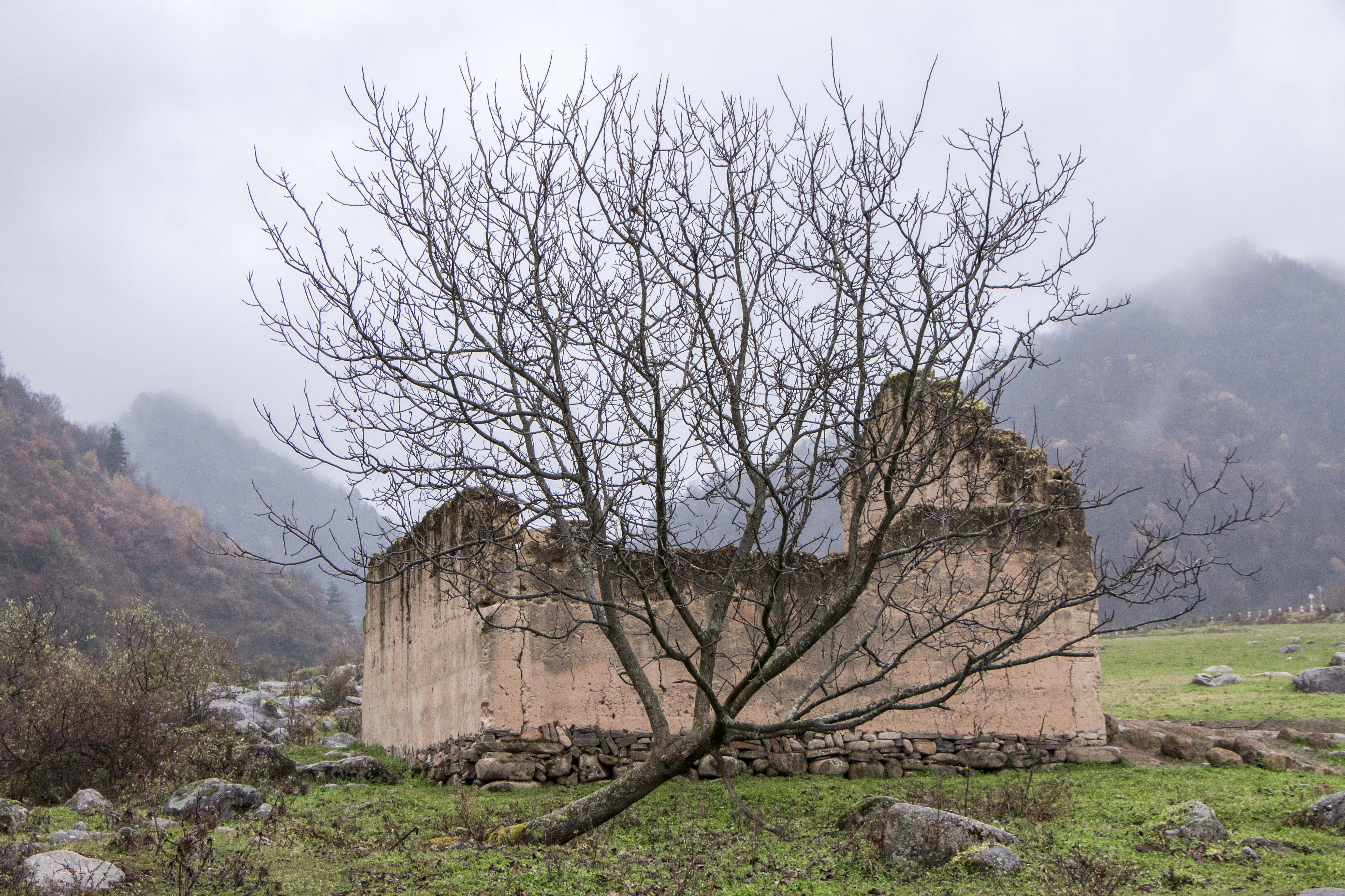 能称之为“牧场”的地方,大多是一望无际的大草原,而这个狮子沟牧场则显得比较独特了,其全长不过2公里,从上至下覆盖着这片草原,属于一眼就能看到头的大小;不过,这个小小的草原上却也有许多让人喜欢的风景,在最中间的位置存在着几棵造型特异的枯树,配上树旁倒塌的老式土墙房屋,拍照出来的效果很不错,如果有带模特的话也是个出人像大片的好地方。