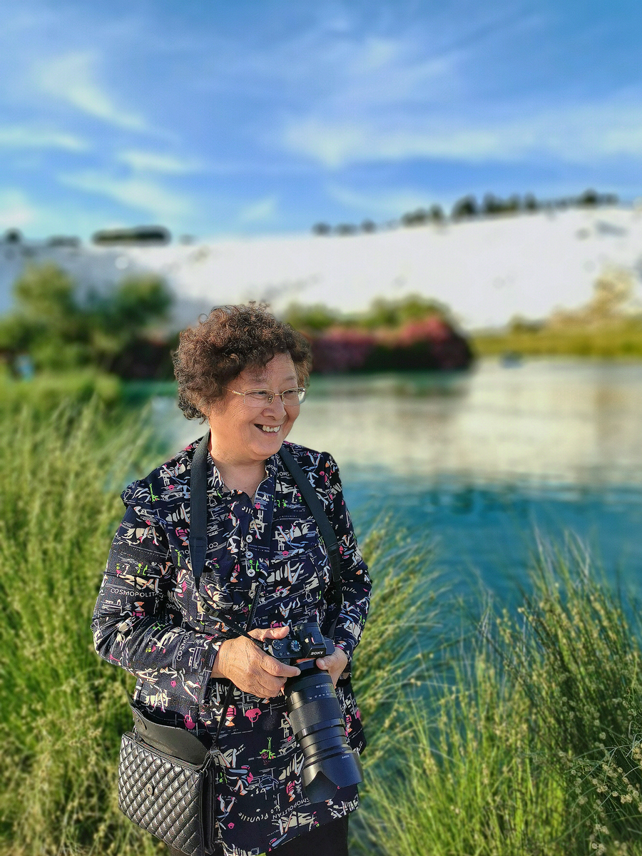 阳光下,一圈圈的白色的棉花池里泛着晶莹的蓝色,奇幻至极……让无数游人惊艳!当我发朋友圈时,有人疑惑问:“冷不冷?”哈哈,亲们----这可不是冰雪,是温泉呀,光着脚儿还有点烫呢。”