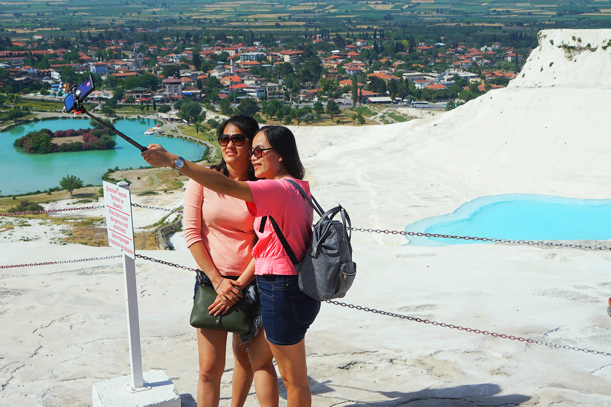 虽然钙 华池区域比较硌脚的,有些地方还非常湿滑。但是挡不住到处在点缀着风景的游人们的热情。