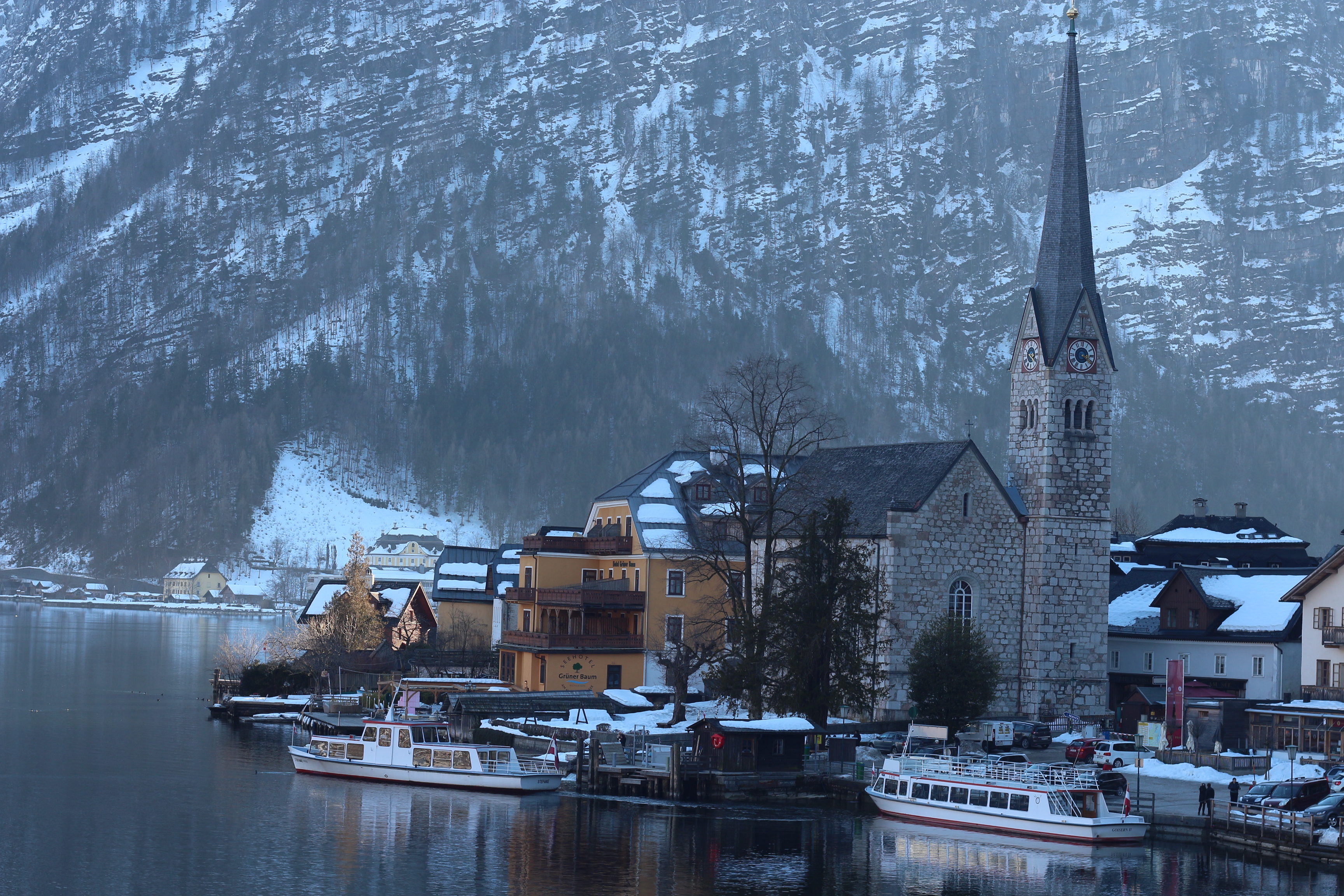 这是经典的明信片视角,哈尔施塔特的夏天的照片和冬天的照片完全是两种感觉,冬天给人一种宁静和安详的童话小镇。