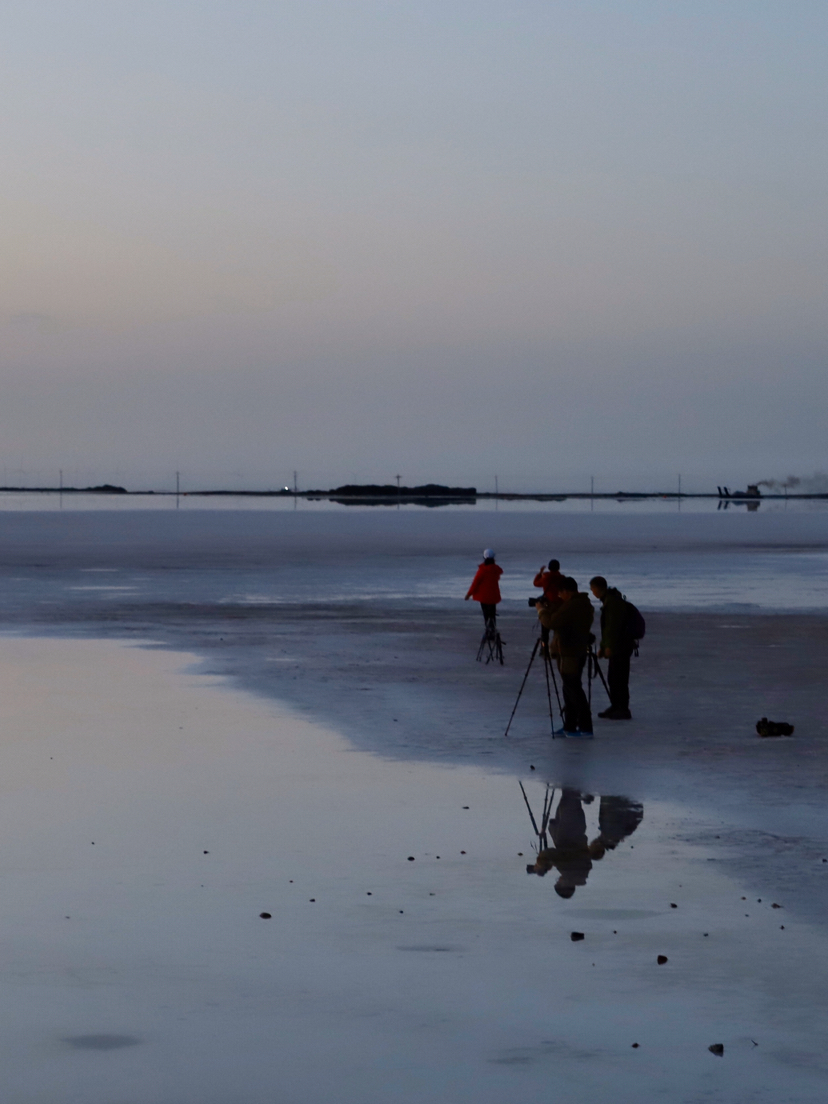 · 今年茶卡的水位低了很多,同团的队员已经可以进到湖里拍照了。