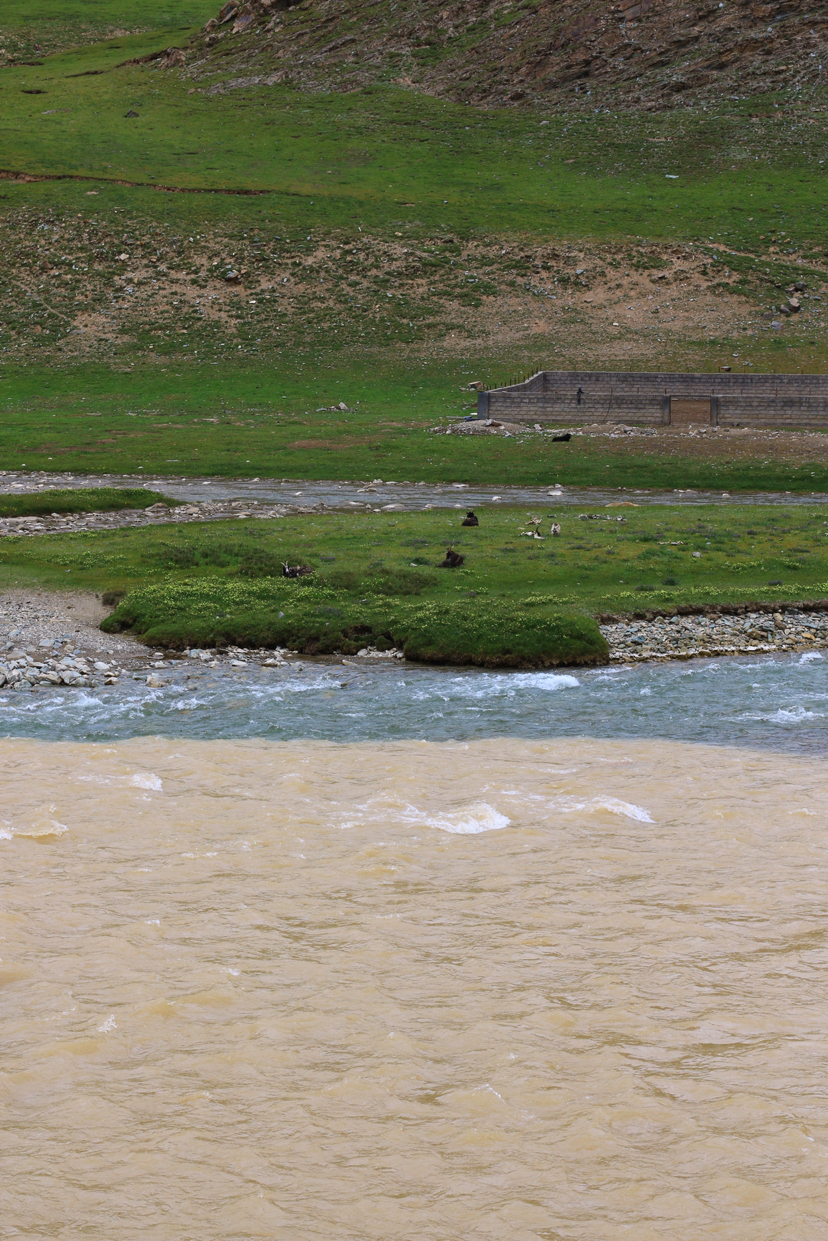 · 走的时候经过一处河流交汇,可以看到河水中有明显的清浊分界线。