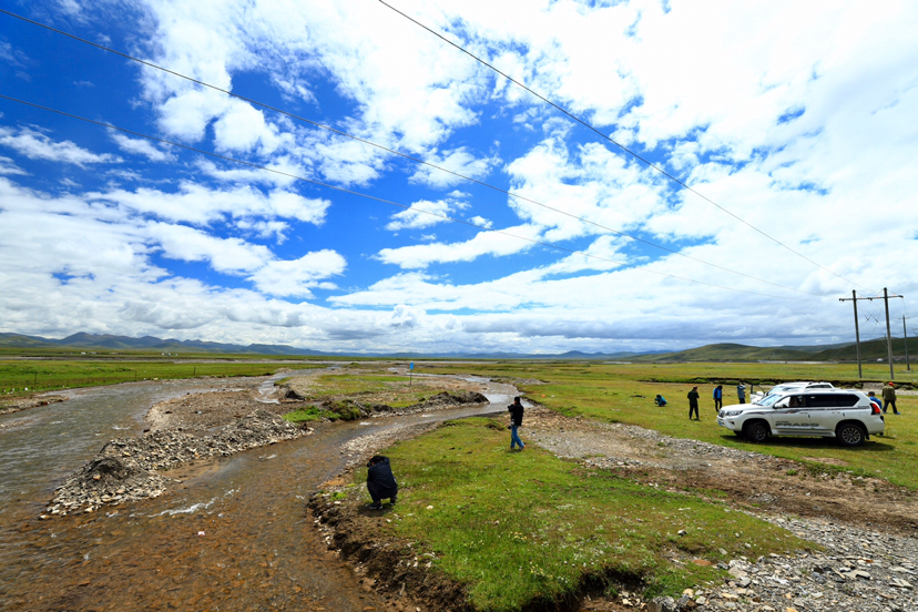 · 午后,车队开上共玉高速,海拔继续爬升,一路向北奔向长江流域和黄河流域的分界线——巴颜喀拉山。翻过海拔4800米的巴颜喀拉山口,本以为前方是崇山峻岭,没想到是另一片天地。