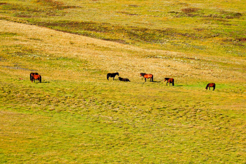 · 高原的神奇之处就在于,爬到山顶之后发现前方居然是一片坦途,路的两边是辽阔平缓的牧场,浅滩和小溪就在山顶上缓缓流淌。