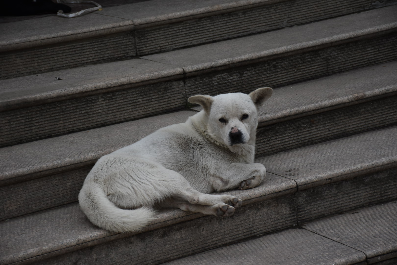 准备坐返程车的时候,经过一家院子,门口有三只狗,这只白的很激动,拍他也很警惕,不过还好,他们让我们过了。
