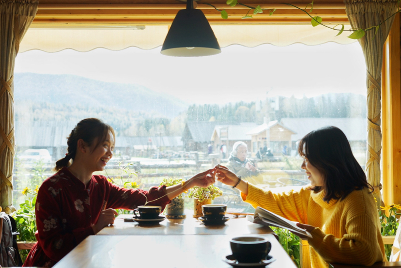 如果你想在禾木找个发呆、晒太阳的地方,以下👉这两处就非常适合: