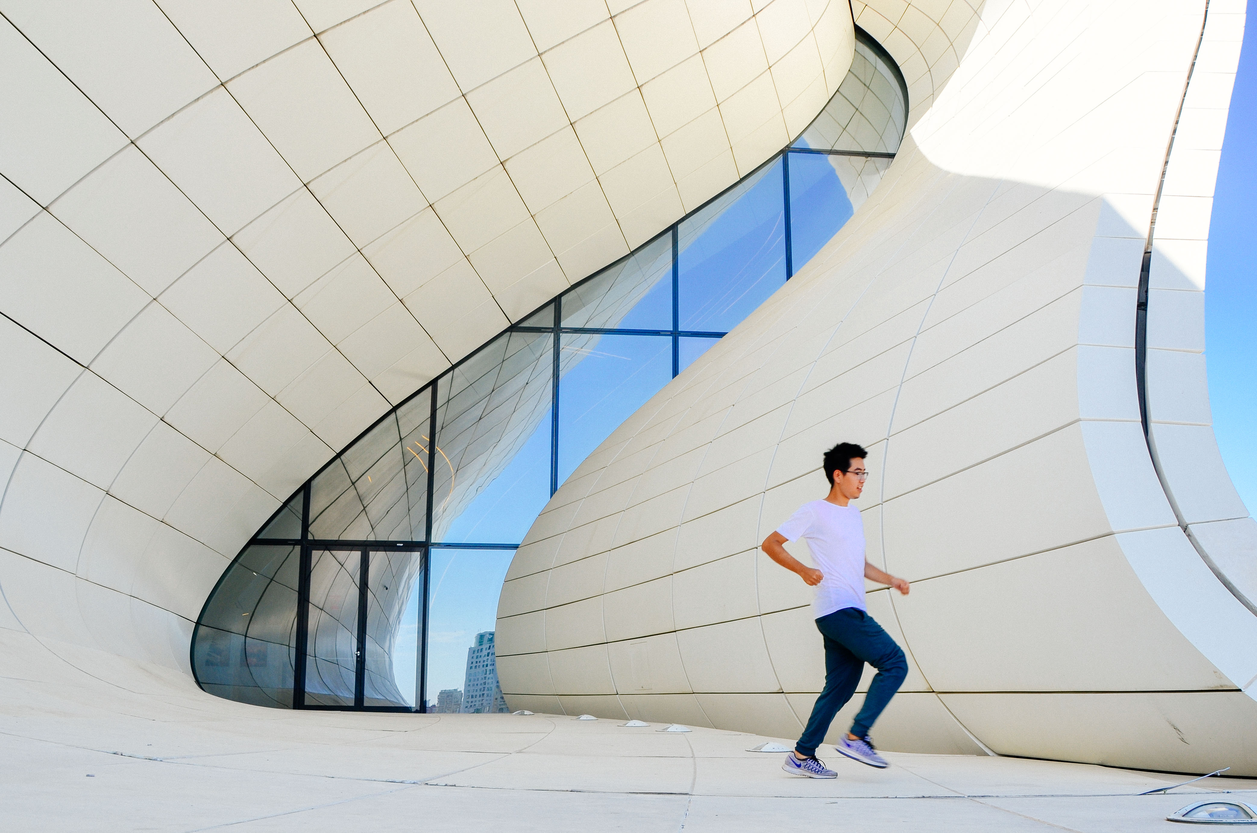 第四次出门那就是要去机场了,不过在这之前肯定是要去巴库文化中心呀,如此惊骇世俗的建筑怎么样都要参观的。超级简洁的外观以明亮的内在,到处都充满弧度设计。真是“圆形属于上帝呀”,让人感到舒适亲切。当然,这么白在外面可是要付出代价的,在这里就要被太阳晒死了,只好躲到阴影下。