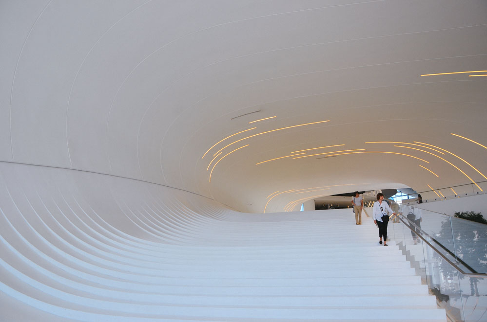 阿利耶夫文化中心位于阿塞拜疆共和国首都巴库,这一哈迪德的最新力作无疑成为了当地的城市新地标。整个设计包括一个博物馆、一个图书馆和一个可容纳1000人的会议中心。这一综合性项目围绕中央广场将这一区域的住宅区、办公商业区和酒店等设施统一起来。