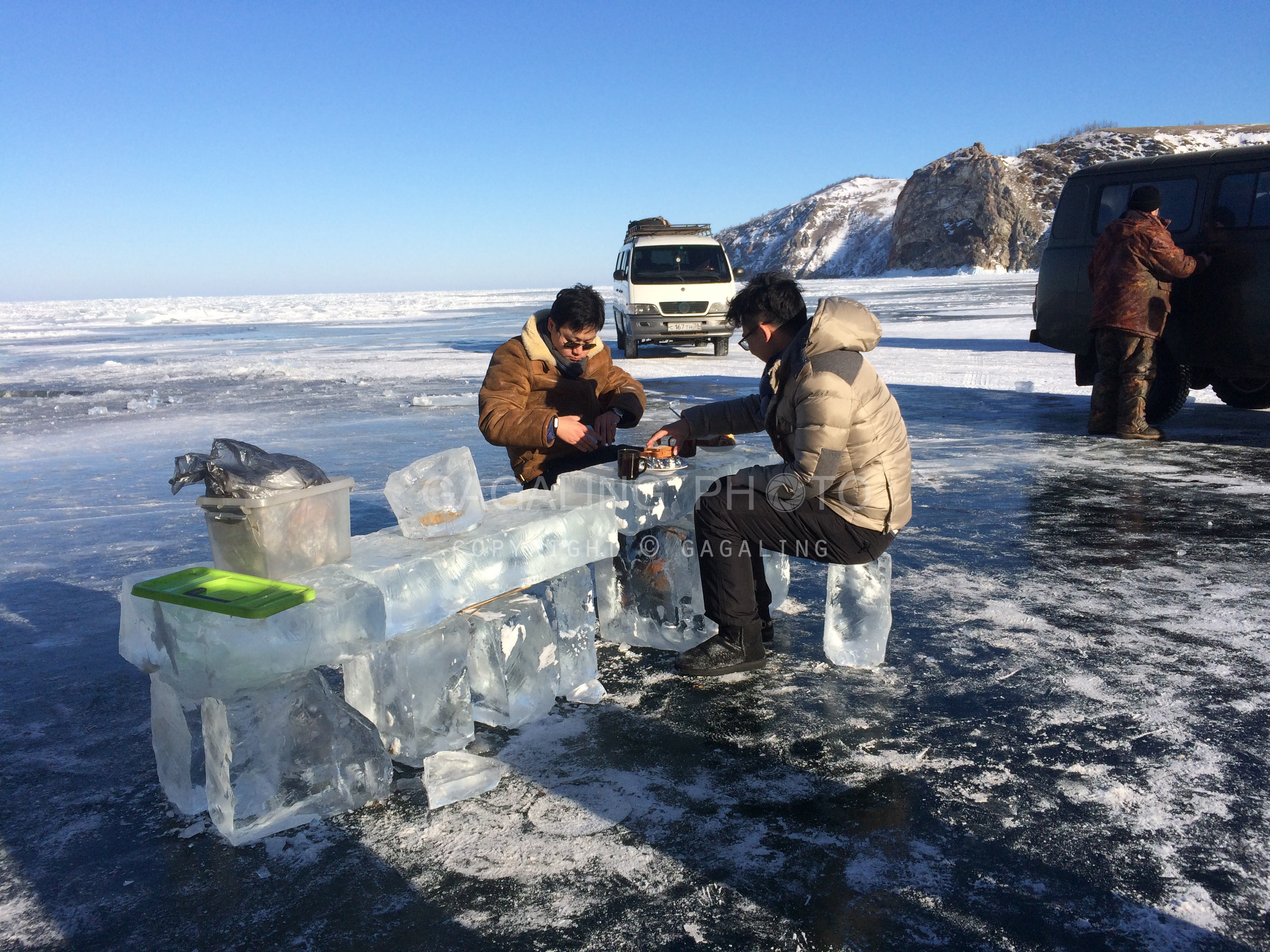从市区出发大约是6小时的车程到达奥利洪岛,中间有休息站可以用餐。车内暖气很暖,车窗上总是蒙着厚重的霜,后排想看窗外的景色,就要不停的擦拭着玻璃,滋滋滋的响声此起彼伏。