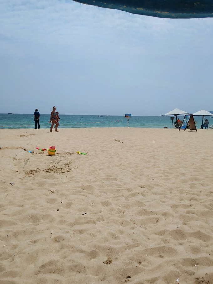 我们是中午到的,海滩上也是人挤人,很多人都是直接穿着泳衣泳裤就来海滩游泳了,确实是 亚龙湾的水质是变成了好,海边还有专门划出游泳的边界,只要在规定的海域内游泳还是比较安全的,可是我是一个旱鸭子,不会游泳。因为 亚龙湾 这边有军事基地,所以是不让韩拍的海滩也有明文禁止航拍的标志。