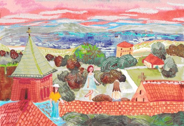 抬头望见远处的要塞和附近建筑橙红的屋顶宛如一幅瑰丽的油画,偶尔有几只白色水鸟飞过,美如画说的就是这样的场景吧。