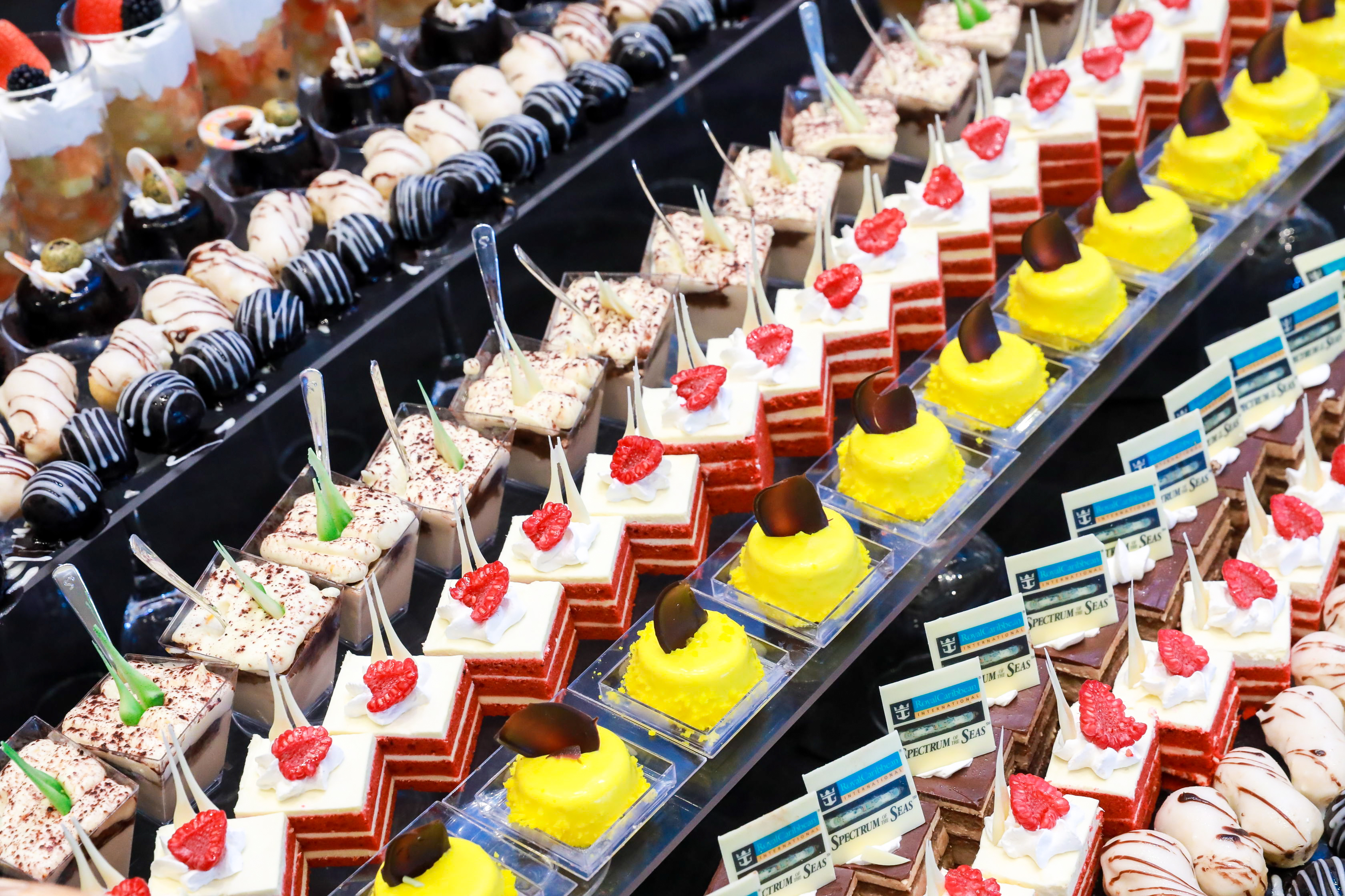 船上餐厅中西菜品云集,各色美味让人应接不暇。对于吃货来说,旅程简直太美妙!餐厅中,各色中西糕点也是大家的最爱,鲜艳的色泽和诱人的香气,让人完全Hold不住!