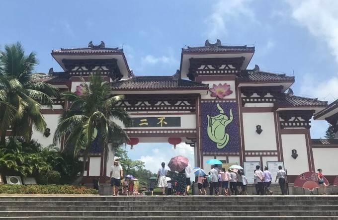 目前世界上最大的一尊金玉佛像,被 海南 人民骄傲的称为“镇岛之宝”。金玉观音圣像高3.8米,由观音金身、佛光、 千叶 宝莲、木雕须弥底座四部分组成,耗用黄金一百多公斤, 南非 钻石一百二十多克拉、翡翠一百多公斤、以及数千粒红蓝宝石、祖母绿、珊瑚、松石、珍珠等奇珍异宝,评估价1亿9千2百万人民币。佛像采用世界手工艺之一绝的 中国 传统“宫廷金细工”敬造,由我国一代工艺美术大师们呕心沥血、历时两载创作完成。