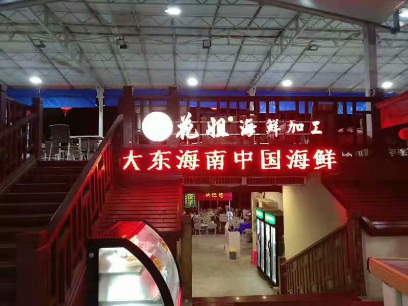 在大东海众多的海鲜加工店里,我们选择了花姐川味海鲜店。这是一家有着将近20年历史的老店,在三亚海鲜领域,口碑极好,也是一家网红海鲜店。