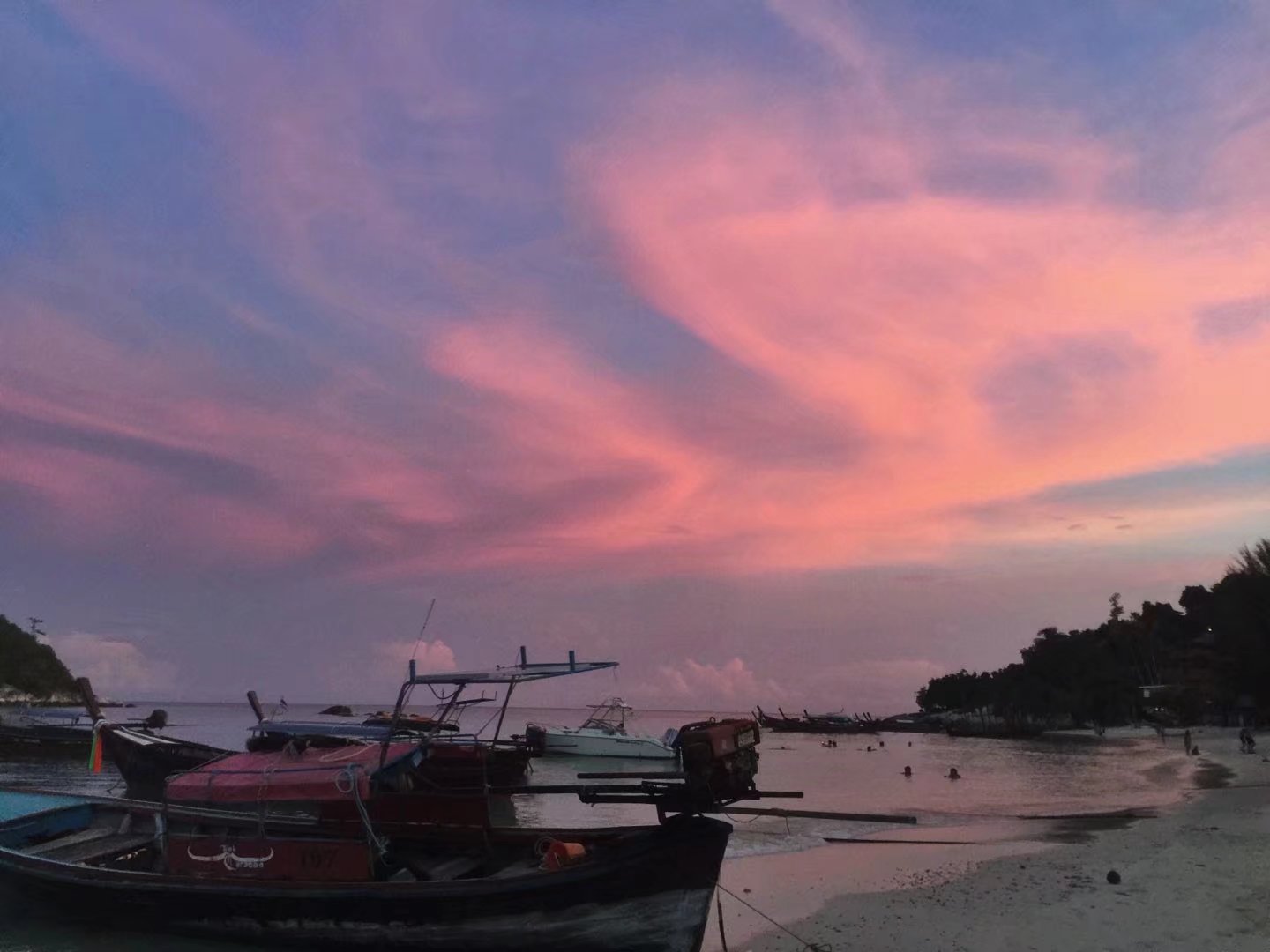 日落海滩位于丽贝岛的北部,是捕捉最美日落的地方,但同时也是三大海滩中最偏远,交通最为不便的地方,从步行街区域徒步到达的话,需要20分钟。如果不想走路,建议坐摩的,一趟100泰铢,我真的是非常非常喜欢夕阳!!!比热爱日出多一百倍的喜欢夕阳。