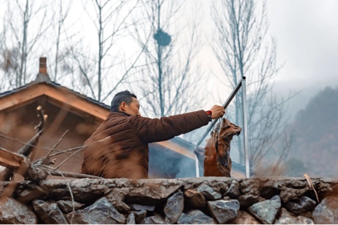 一听说要住在山里,我这个老寒腿选手是拒绝的,冬天的山里潮湿阴冷,遇上晴天还好,一旦下雨,整个人都萎靡不振。但当小汽车载着我们驶过留坝县城,进入大秦岭下的楼房沟,再绕进一处小路,在一座小小的木吊桥边停下时,我是欢呼着蹦下车的,小河对面的山坡上,有一处院落,在草木休憩的深绿色中,散发着温暖的气息。我们入住的小院,是楼房沟9个院落之一,临溪近林,院子前有一片菜地,树下还有散步的小羊。