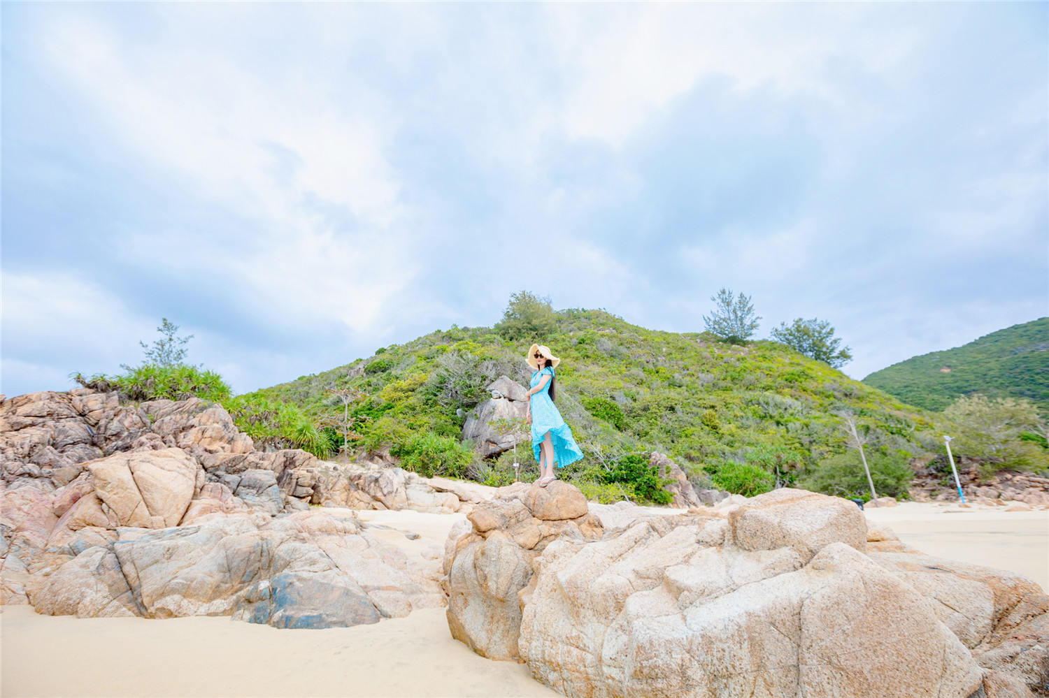 在这里,可以看到许多新人和小姐姐打卡拍照的身影,怪石、青山、海浪、沙滩,还有随处可见的椰林,都成了得天独厚的背景墙,让人爱得挪不动脚。