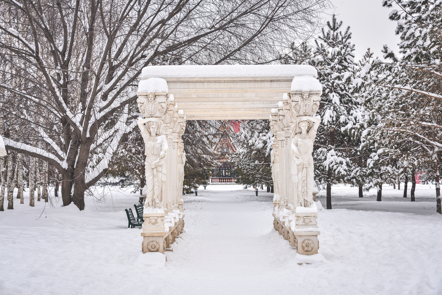 察里津诺城堡、 阿穆尔 城堡、彼得洛夫艺术宫三座城堡建筑交相呼应,冬天的童话演绎出庄园惊艳的艺术美感。