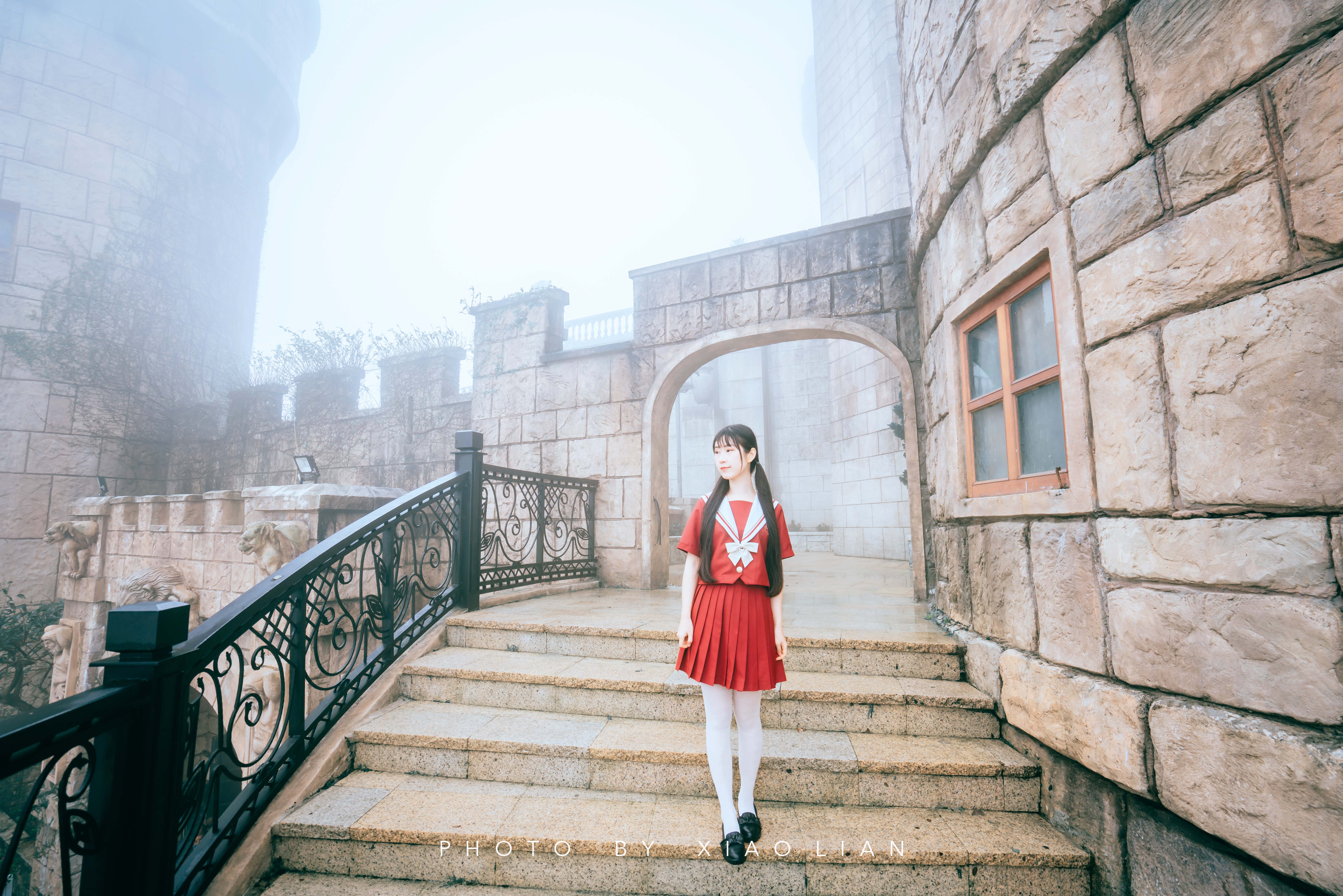 这里本应是整个园区最漂亮的地方,欧式的花坛、喷泉为前景,后面是法式风情的高大古堡,我此时真是恨不得变成风婆婆,把这些始终不散的雾吹飞!