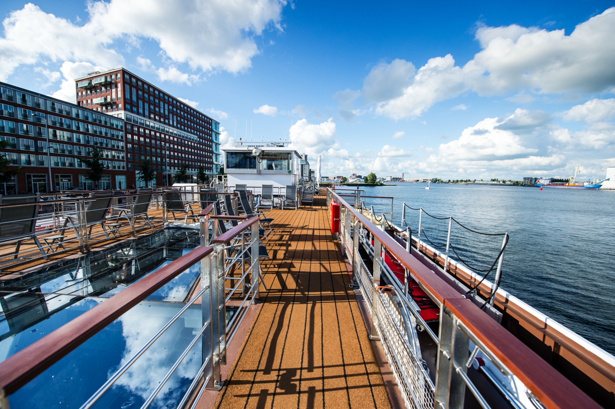 乘着全玻璃观景窗的长船在清晨的阿姆斯特丹河道上缓缓行驶无疑是惬意的,这座城市的运河在2010年就被认证为“世界文化遗产”之一。沿河两岸,你能看见那些有数百年历史的建筑、雕塑和桥梁,早起骑着自行车的人在岸边一闪而过。偶尔,还能看见划着橡皮艇带着公文包去上班的人——看来“滴滴打船”在这里是完全可能存在的。