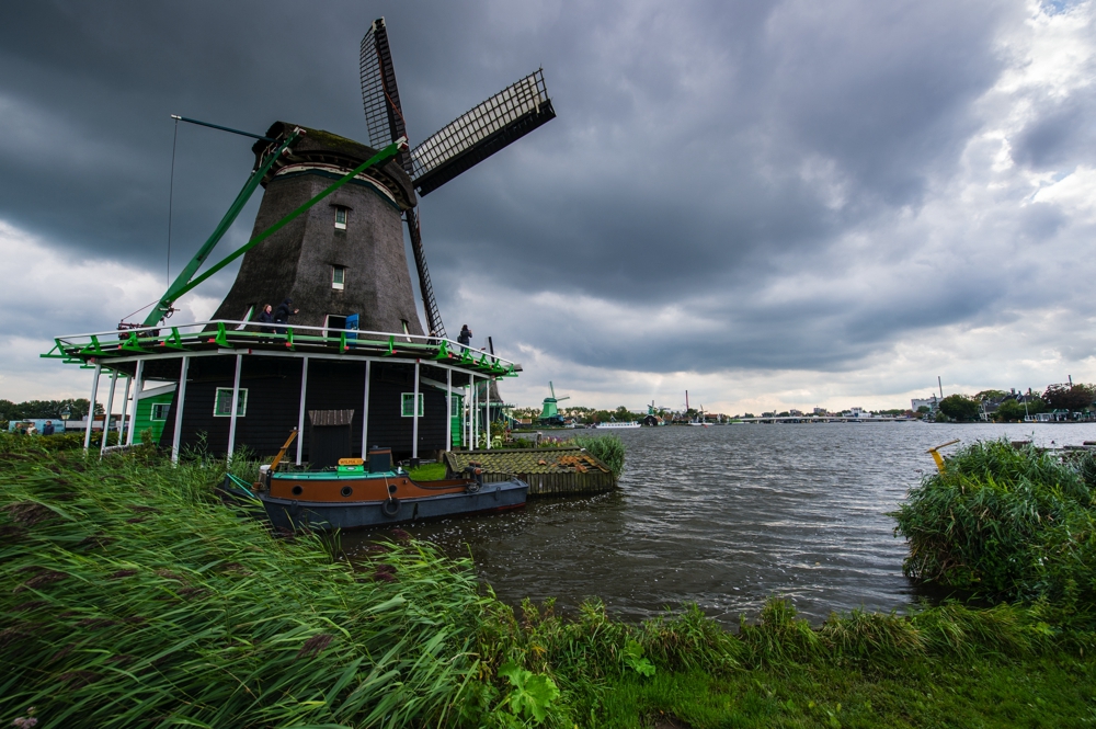 荷兰的天气总是阴晴不定,阳光与雨水总是快速地交替出现。在赞斯堡的风车村,前一秒还在领略低地之国辽阔的田野与纵横的水道的诗情画意,下一秒低沉的阴云与猛烈的风就统治了世界。不过我更喜欢这般郁郁的层云——感觉风车巨人马上就要蹦出来了!