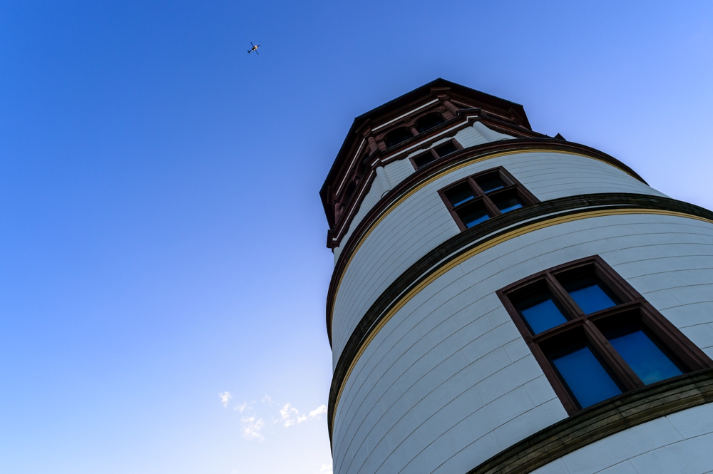 宫塔也是杜塞尔多夫的标志建筑,同样位于莱茵河畔。这座下半部为圆柱形,上半部为八角形的造型奇特的古塔原本是14世纪公爵城堡的一部分,但是胡来大火烧毁了城堡,只留下了这个最后的遗存,现在这里是一个船务博物馆。