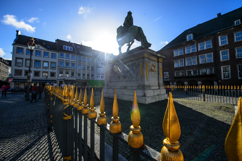 集市广场和杜塞尔多夫市政厅紧挨着,其实广场并不大,中间矗立着1711年雕成的约翰威廉大公爵的青铜骑像,是他造就了杜塞尔多夫成为文化名城。