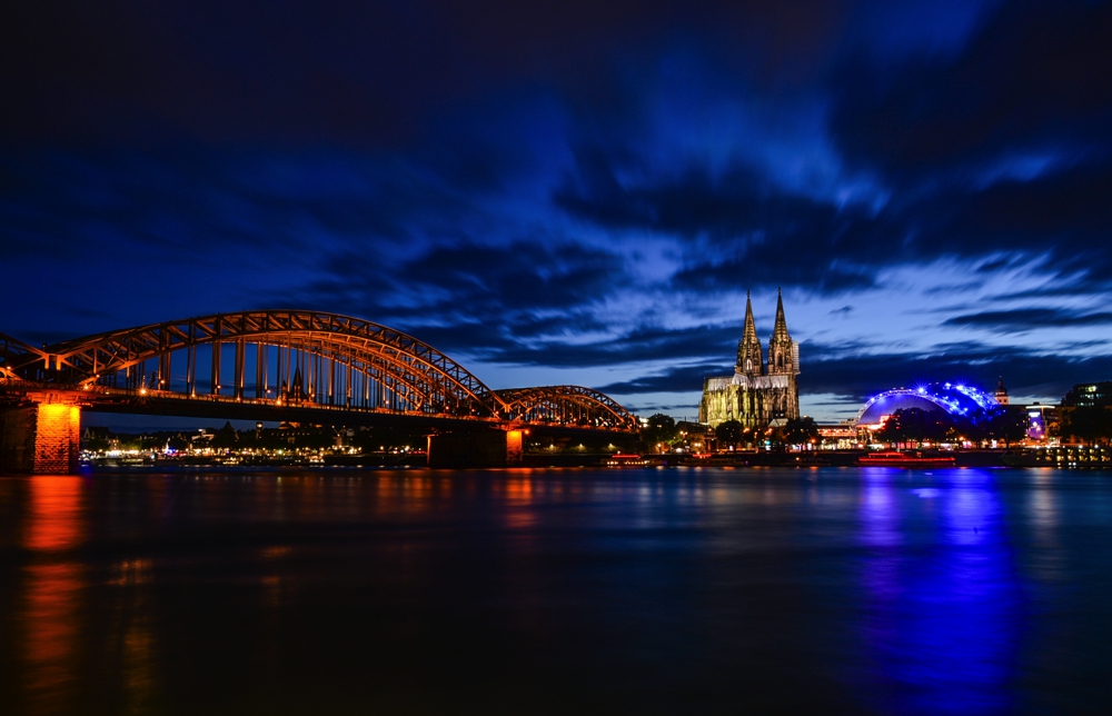 其实做一个风光狗的过程也并全是艰辛。在科隆,我们乘坐的游轮停靠的位置恰好就在莱茵河霍亨索伦桥畔。坐在房间的阳台上,就能看到远处熠熠生辉的科隆大教堂。我开了一罐啤酒,坐在躺椅上,听着舒曼的旋律,看天空渐渐暗下去,红烧云退向了远方,大教堂亮起了灯,然后按下了快门——这是我今年拍过的最惬意的照片。