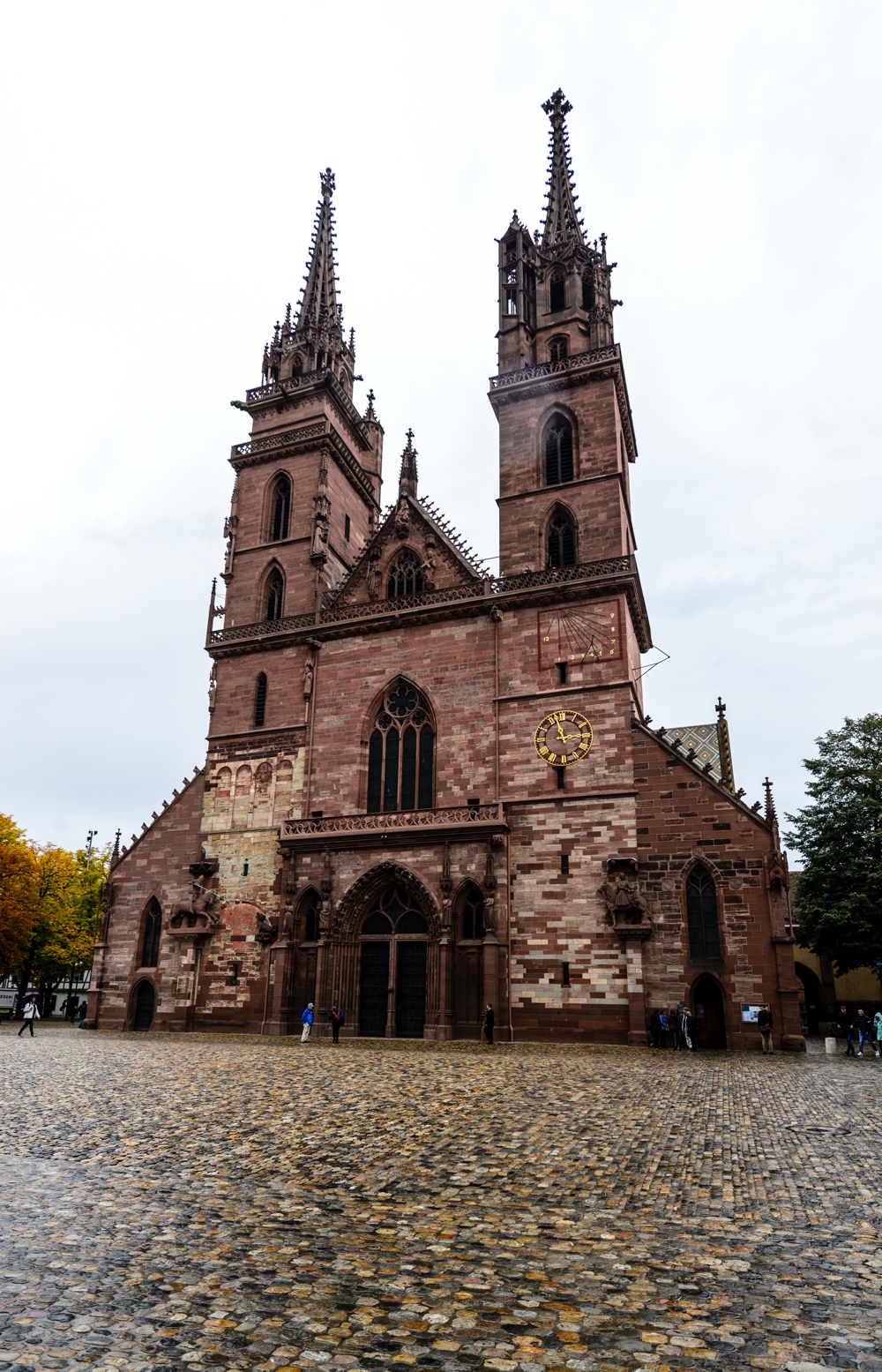 撑着伞,沿着湿漉漉的石子路漫步到了外观略显朴实的巴塞尔大教堂,这座有着高高的哥特式尖顶建筑或许是巴塞尔老城最无法让人忽略的建筑。据说从11世纪——也是1000年前这座天主教就破土动工,之后曾经反复重建。教堂的外观是红色砂岩,看起来并不富丽堂皇,而内部则堪称美轮美奂。文艺复兴时的著名作家伊拉斯谟也在这座教堂里。