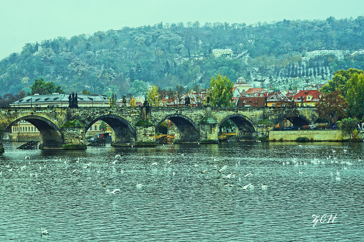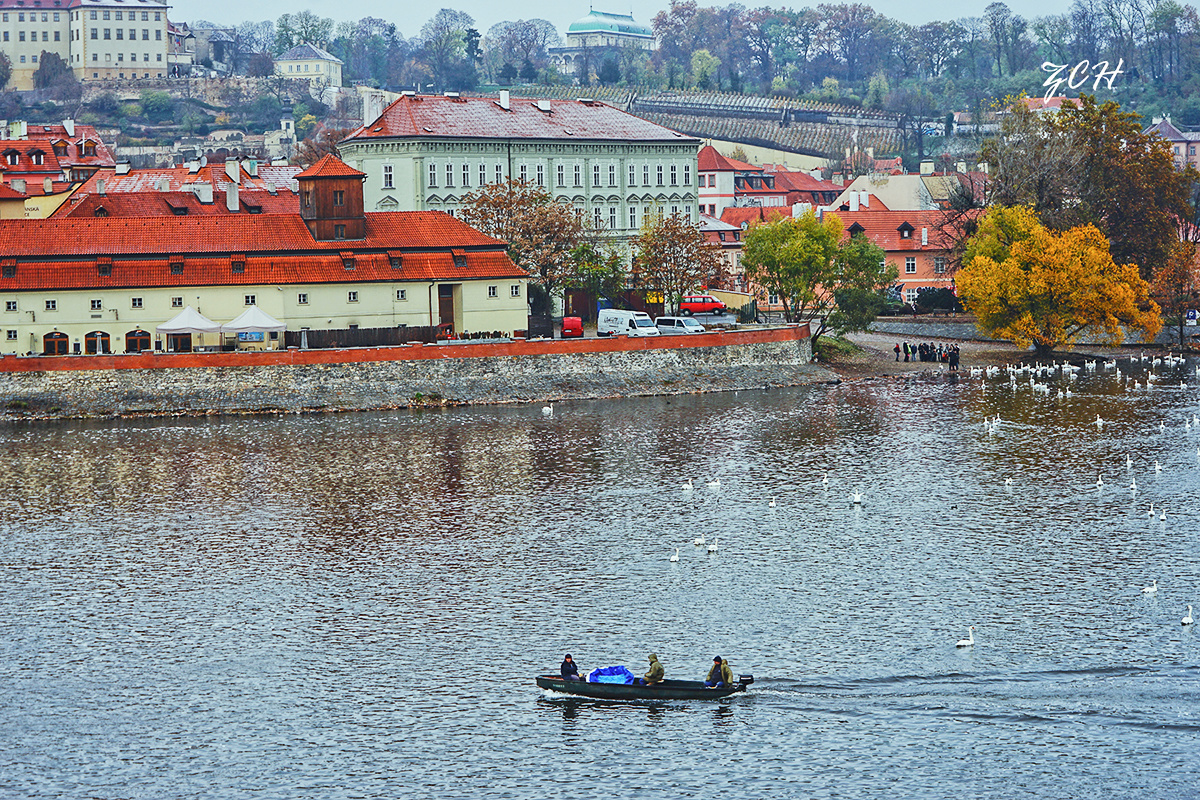 美丽的城市似乎都离不开一条母亲河的陪伴,于布拉格 而言就是伏尔 塔瓦 河。我们去的那天天气虽然不好,但一阵阴雨过后,淡淡晨曦冲破云层,照射到河面上的景象还是很美。一大群壮硕的天鹅和水鸟类聚集,飞翔,清新唯美。