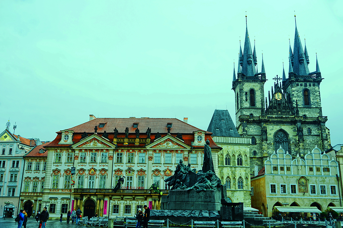 布拉格 广场上的雕像——这黑色雕像是扬·胡斯纪念碑。扬·胡斯是 捷克 的著名学者和宗教改革家,他在1414年被教廷判为异端并在第二年处以火刑,因而引发了 捷克 人民反抗神圣 罗马 帝国的胡斯战争。