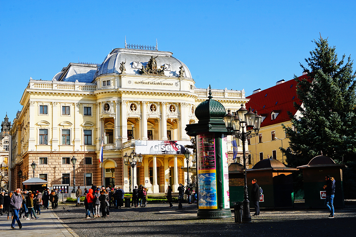 斯洛伐克 国家大剧院。 布拉迪斯拉发 每年会定期举办国际艺术节,夏天在霍维兹多斯拉夫广场上几乎天天都有免费露天音乐会。