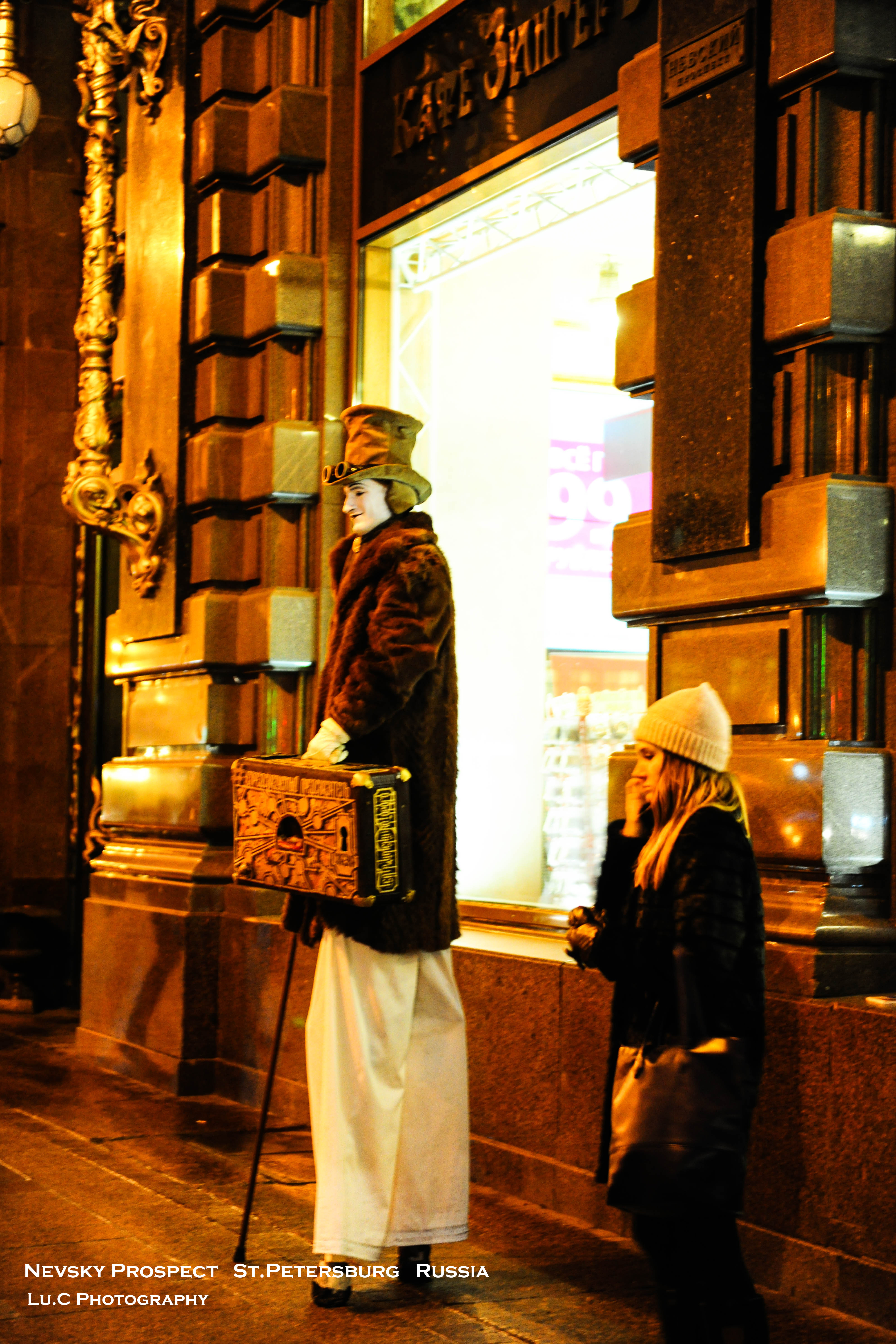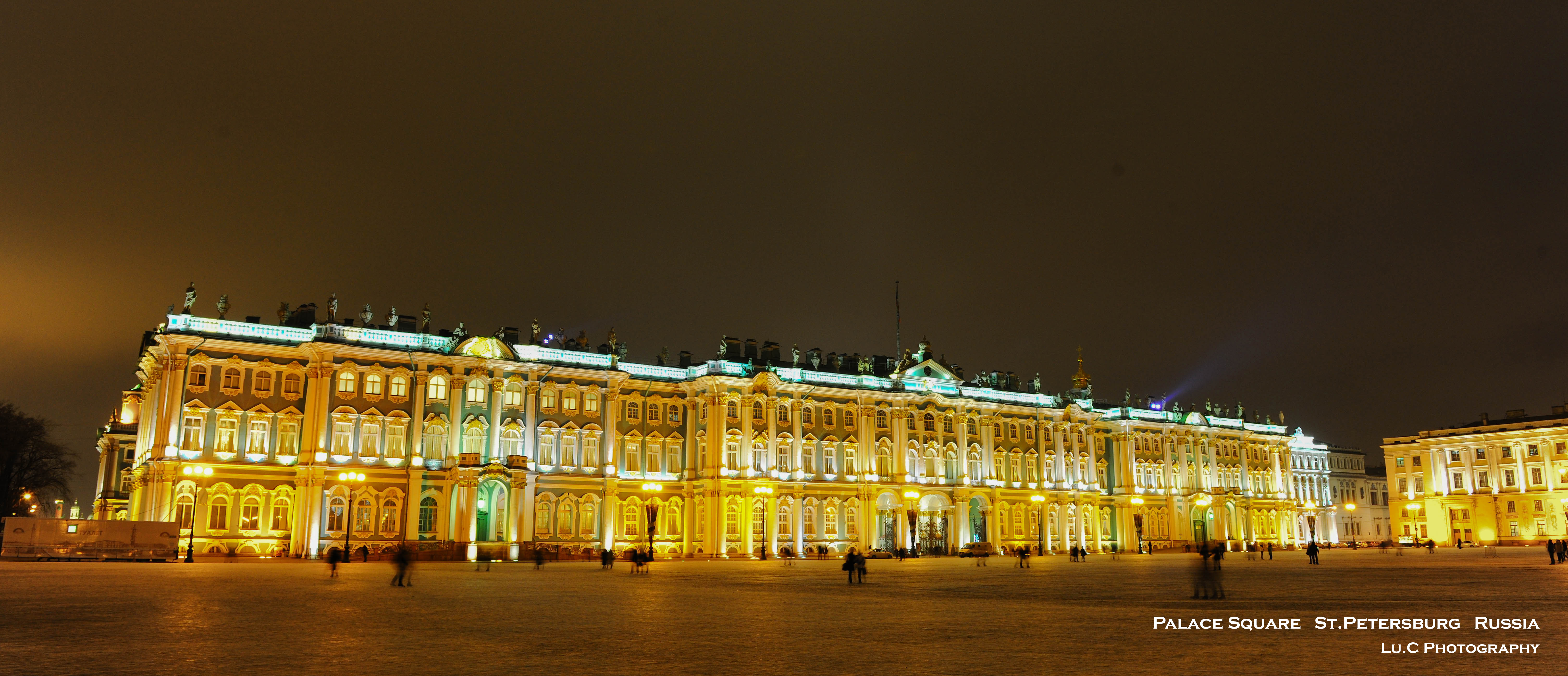晚上纠结了一番要不要再出来,后来还是被夜景的诱惑力打败,抱着相机和三脚架再度出门,懒得走路坐了两站地铁直接到剧院广场前。这才看到白天那些架子在晚上的打灯之后的景象,还是挺漂亮的。也不知道是每天都是这样还是因为圣诞节的余温还没过去——东正教的圣诞节是1月7日,不过听说这里圣诞节氛围并不浓烈。