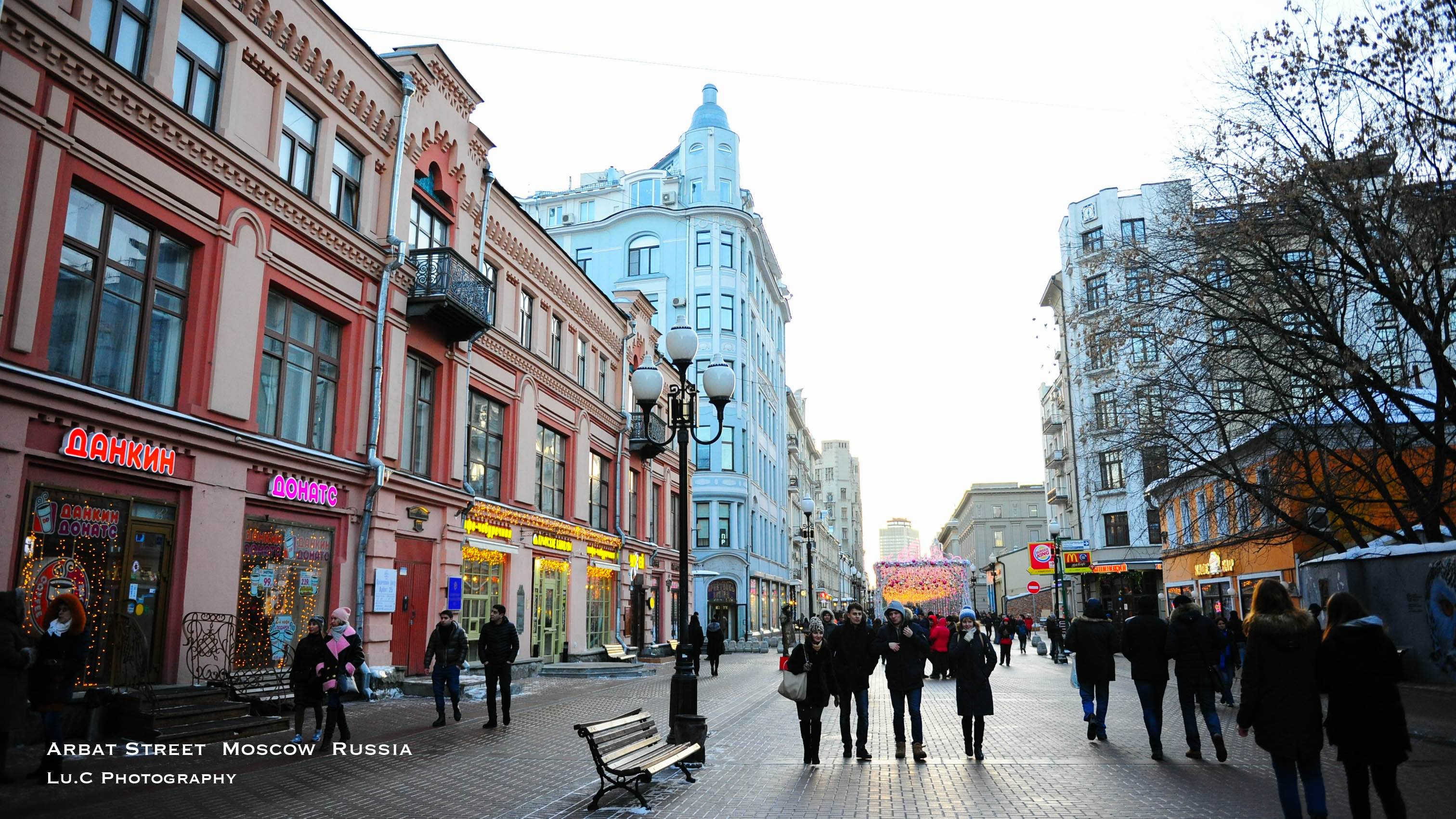 【阿尔巴特街(ул. Арба́т / Arbat Street)】这条步行街已有500多年的历史,保存有许多古色古香的建筑。然而这条曾经的艺术街已渐渐与红场一样,成为了外国旅行者的专属区域——街道两边除了经营俄罗斯工艺品的商店,就是酒吧和餐馆,街上还有画摊、街头艺术、工艺品摊和街头卖唱的歌手,比起旁边现代化的新阿尔巴特街,老阿尔巴特步行街更加富有俄罗斯风情。