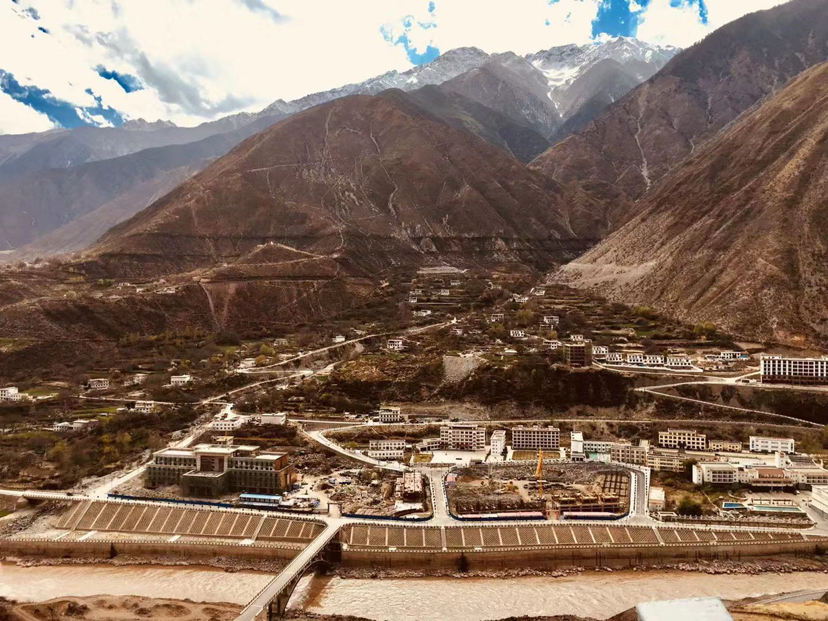 澜沧江流经的大峡谷拐弯处,海拔低于2300左右,周围都是大山,北部大山有草有树、南边一排的大雪山常年不化。峡谷温度16度。附近有很多温泉,周边能看到大面积的新建“度假村|、高级别墅,在西藏像个小县城的规模。