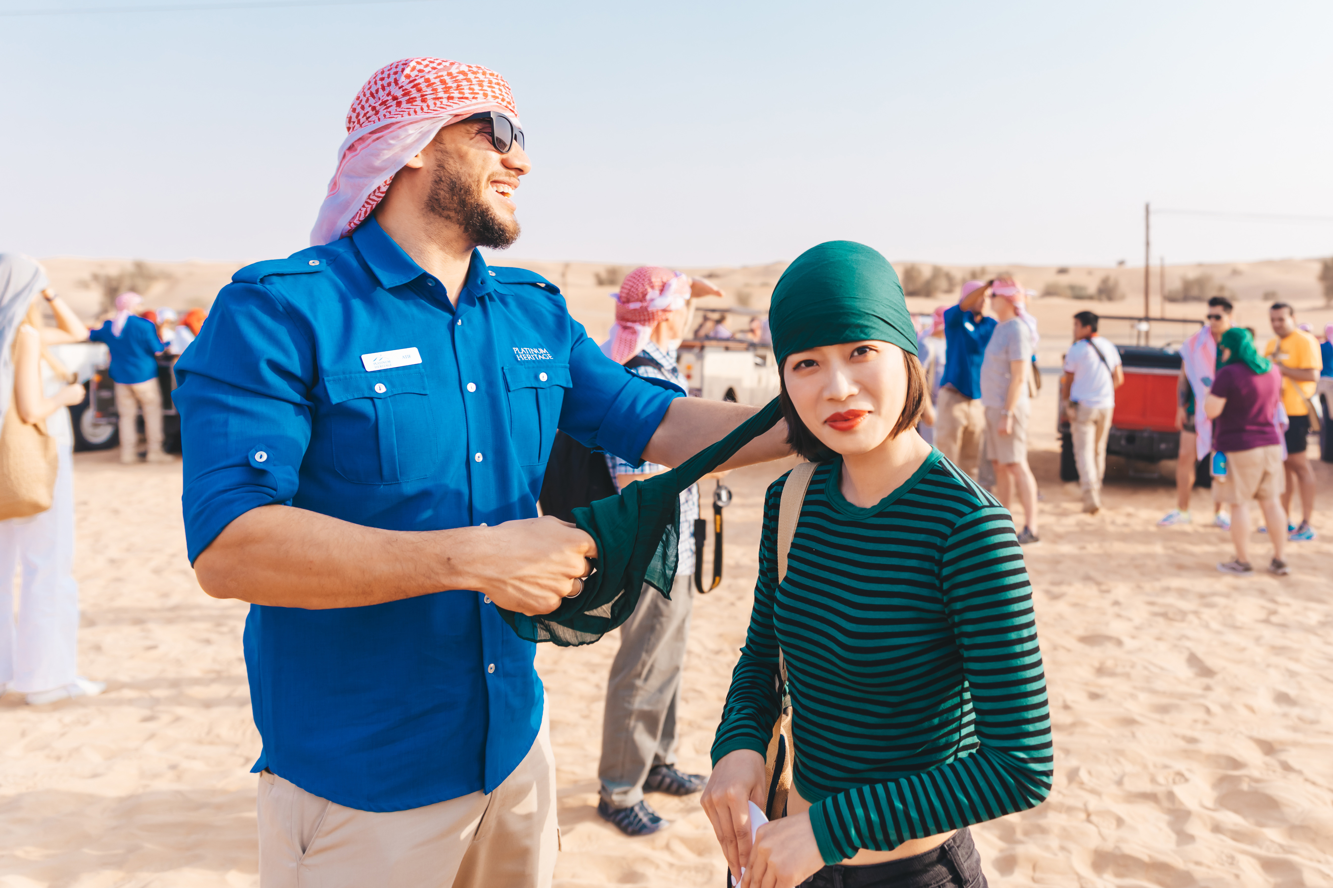 行程中最让我难忘的一件事,是关于阿拉伯妇女的黑袍。其实,我本身对宗教不是很感兴趣,因为我觉得不管信仰什么宗教,是每个人的自由。我参加了朱美拉清真寺的讲解之旅,讲解员给我们演示了如何穿黑袍和包头巾。他说,黑袍是为了保护女性不受阳光和沙子的伤害,是一种文化,不是宗教。听到这里,我心里不禁冷笑一声。我所知道的,是《可兰经》中说,除在丈夫和其他亲人面前之外,当俯首下视,遮其羞体,将头巾垂至衣襟,不表露美艳与装饰。