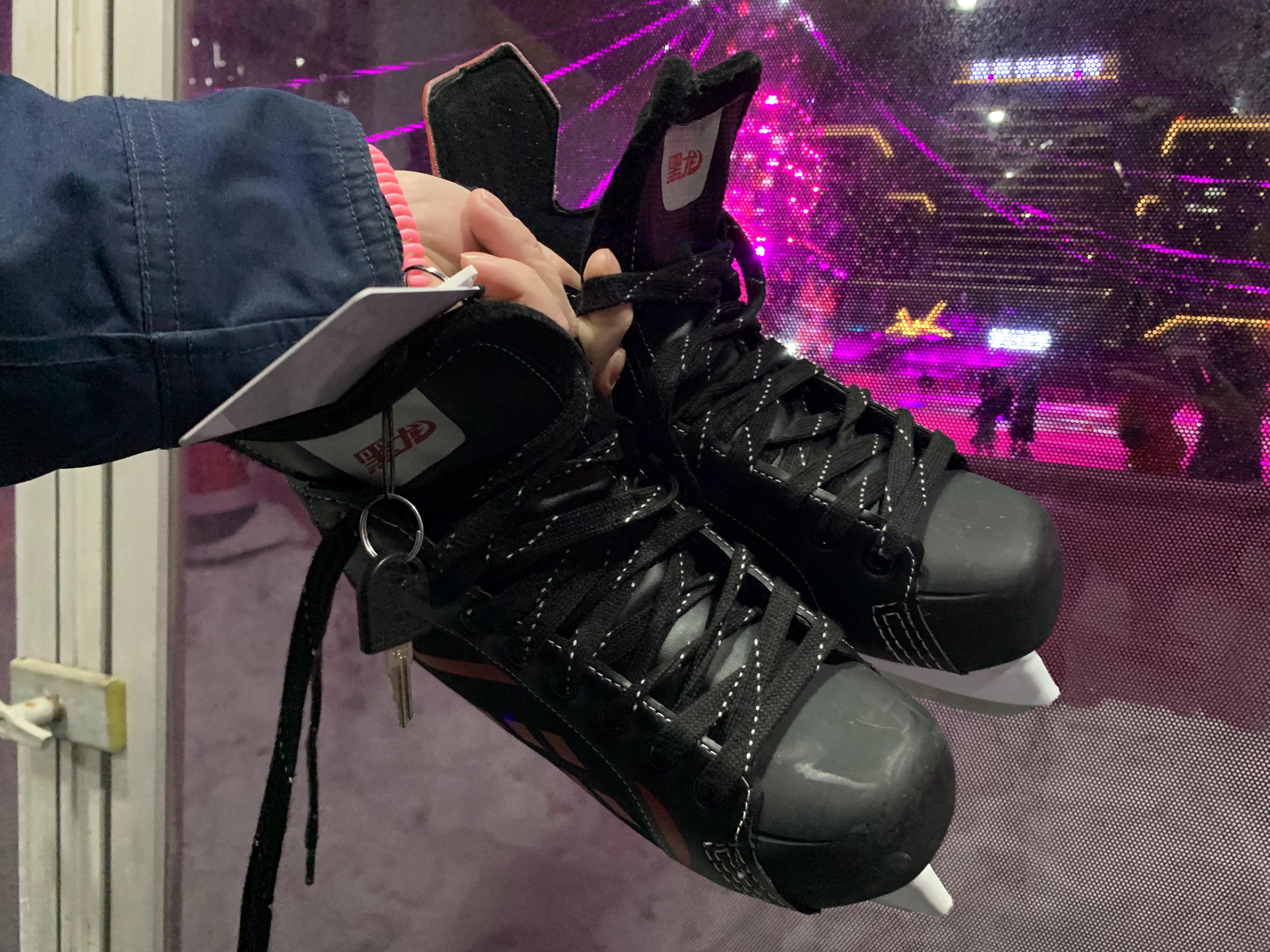 哈哈哈,看着这颜色是不是很梦幻,是当地斥巨资打造的梦幻溜冰场。边上其实就是辽博,逛完辽博,其实就可以来这儿溜个冰了,工具租一下好像是十块钱。记不得了。只顾着玩了。另外,音乐超嗨。