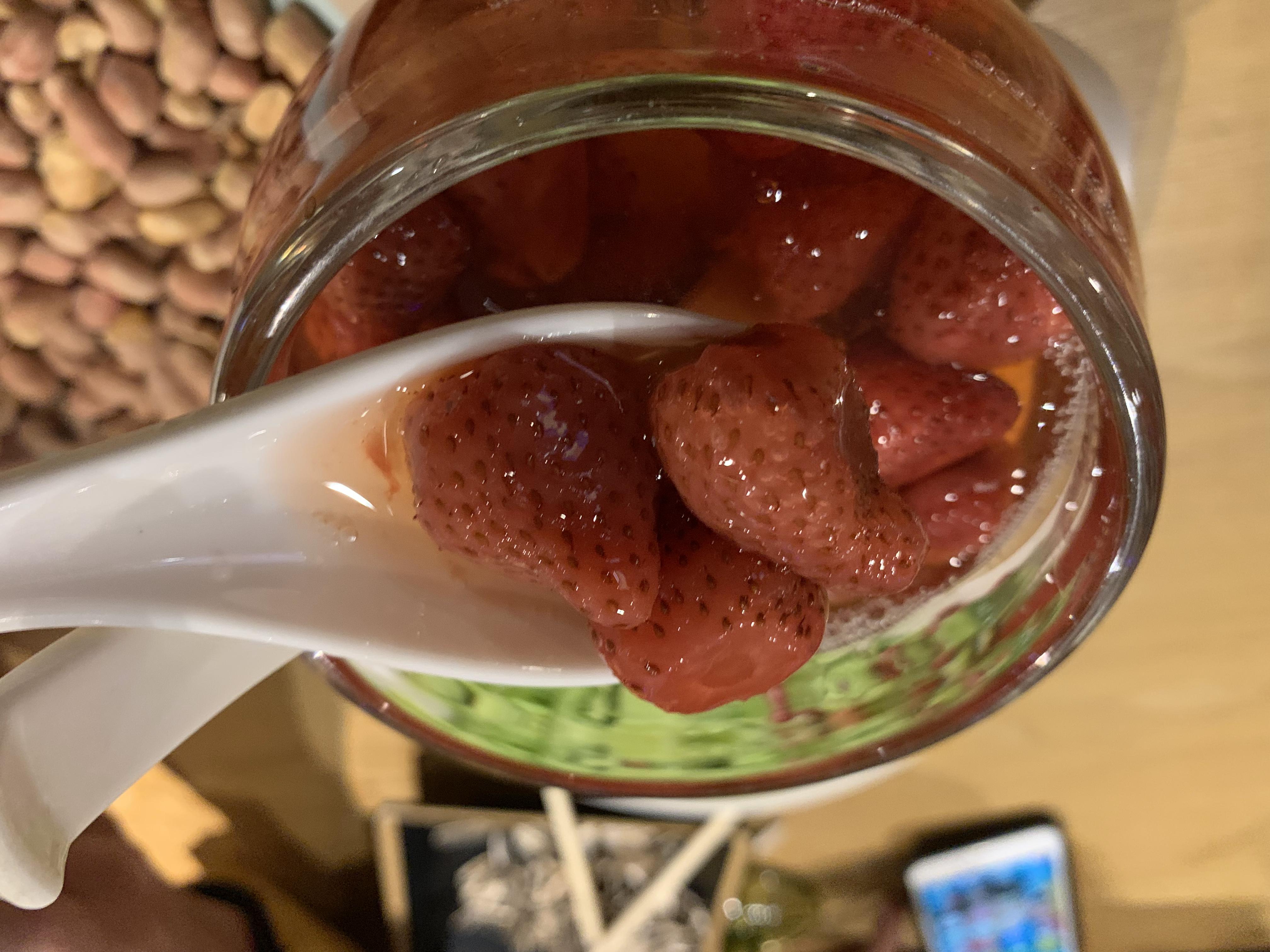 甜品,都是草莓,几乎是我一个人吃的,汤都被我喝完了。